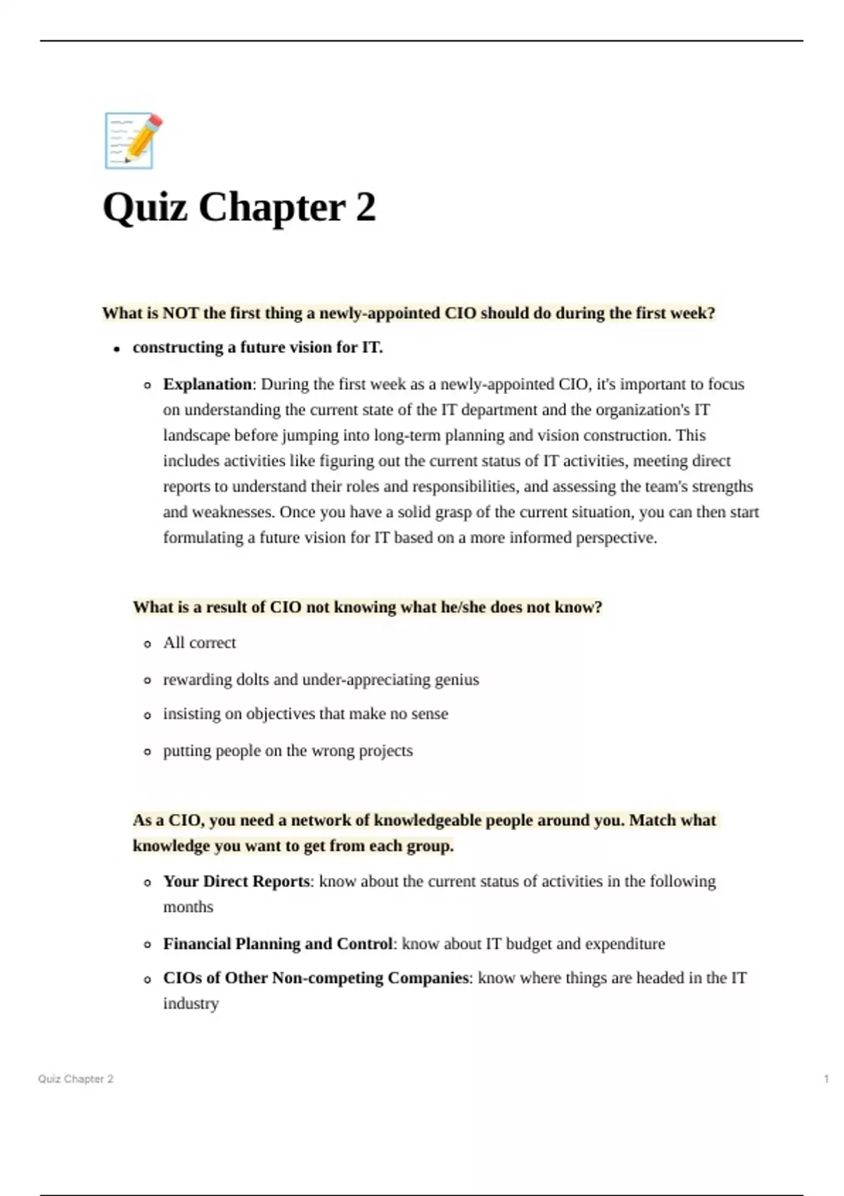 Explanation: During the first week as a newly-appointed CIO, it's important to focus