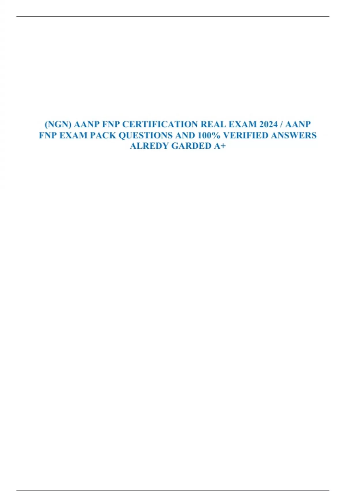 (NGN) AANP FNP CERTIFICATION REAL EXAM 2024 / AANP FNP EXAM PACK QUESTIONS AND 100% VERIFIED ANSWERS ALREDY GARDED A+
