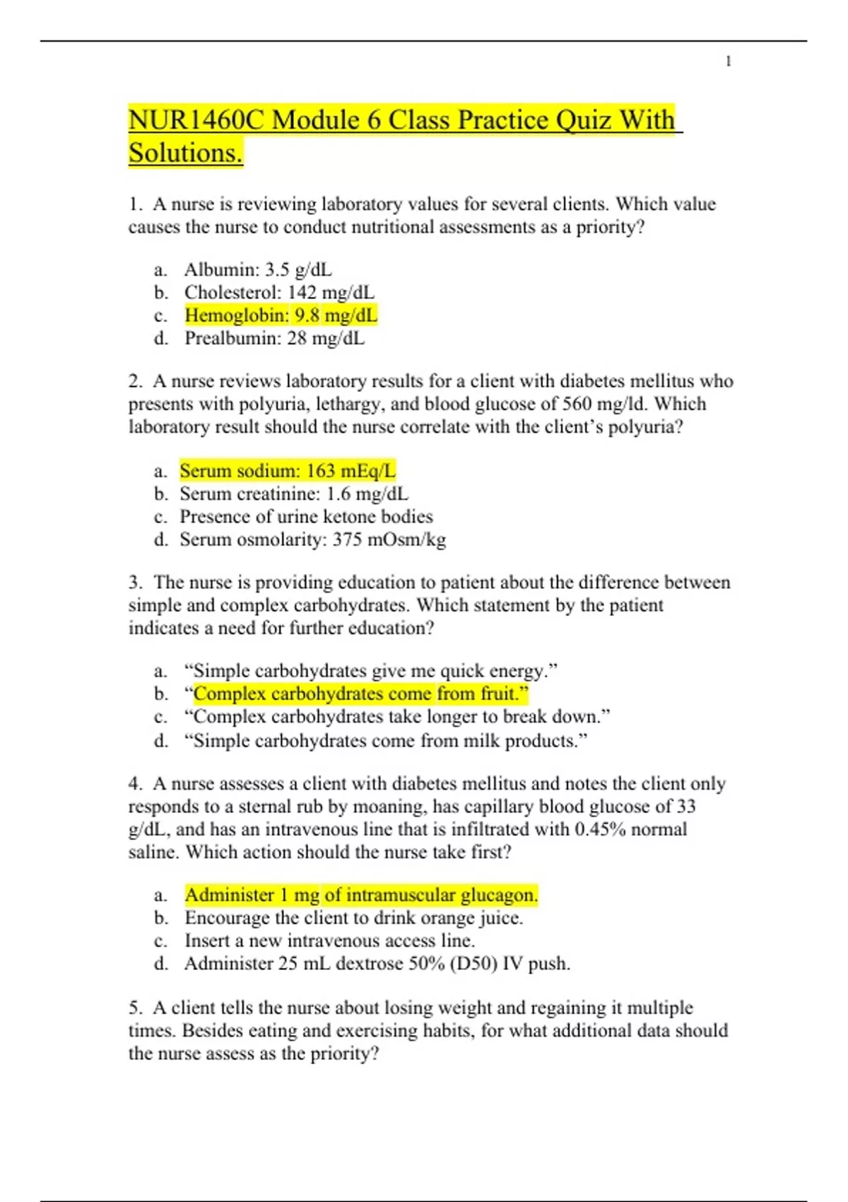 NUR1460C Module 6 Class Practice Quiz With