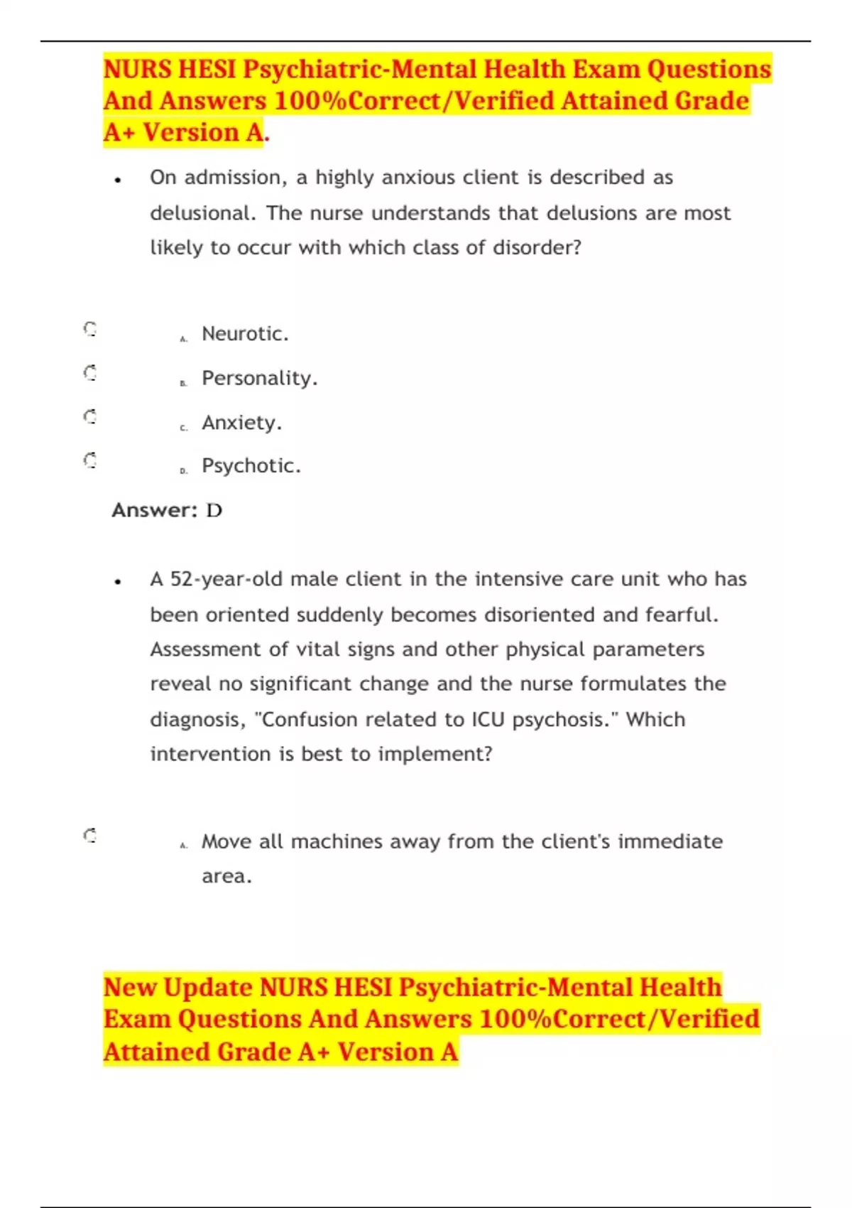 ,NURS HESI Psychiatric-Mental Health Exam Questions And
