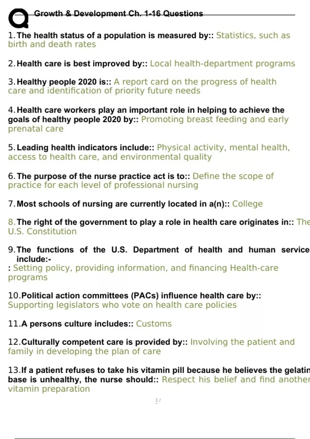 Growth & Development Ch. 1-16 Questions and Correct Answers