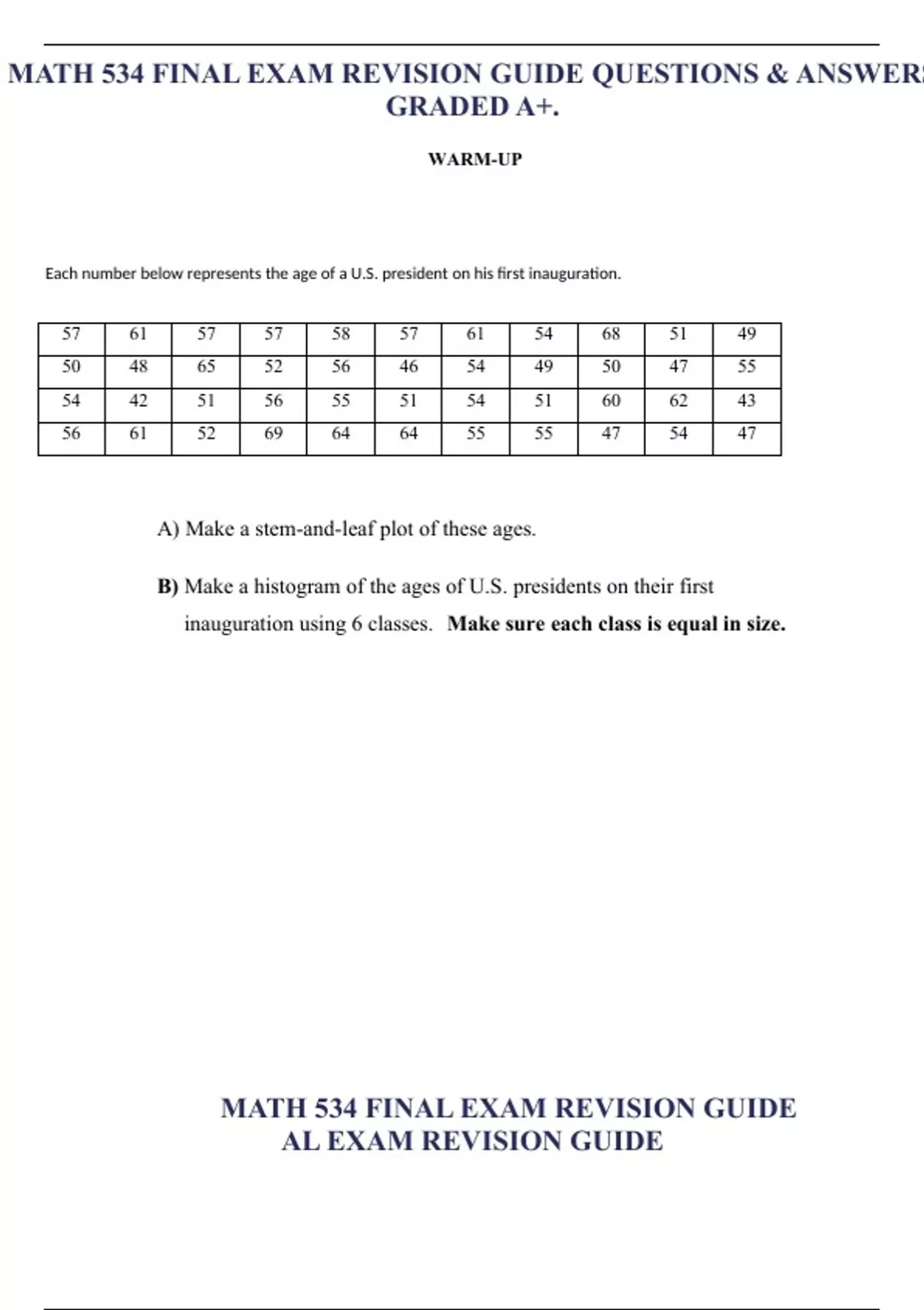 MATH 534 FINAL EXAM REVISION GUIDE QUESTIONS & ANSWERS