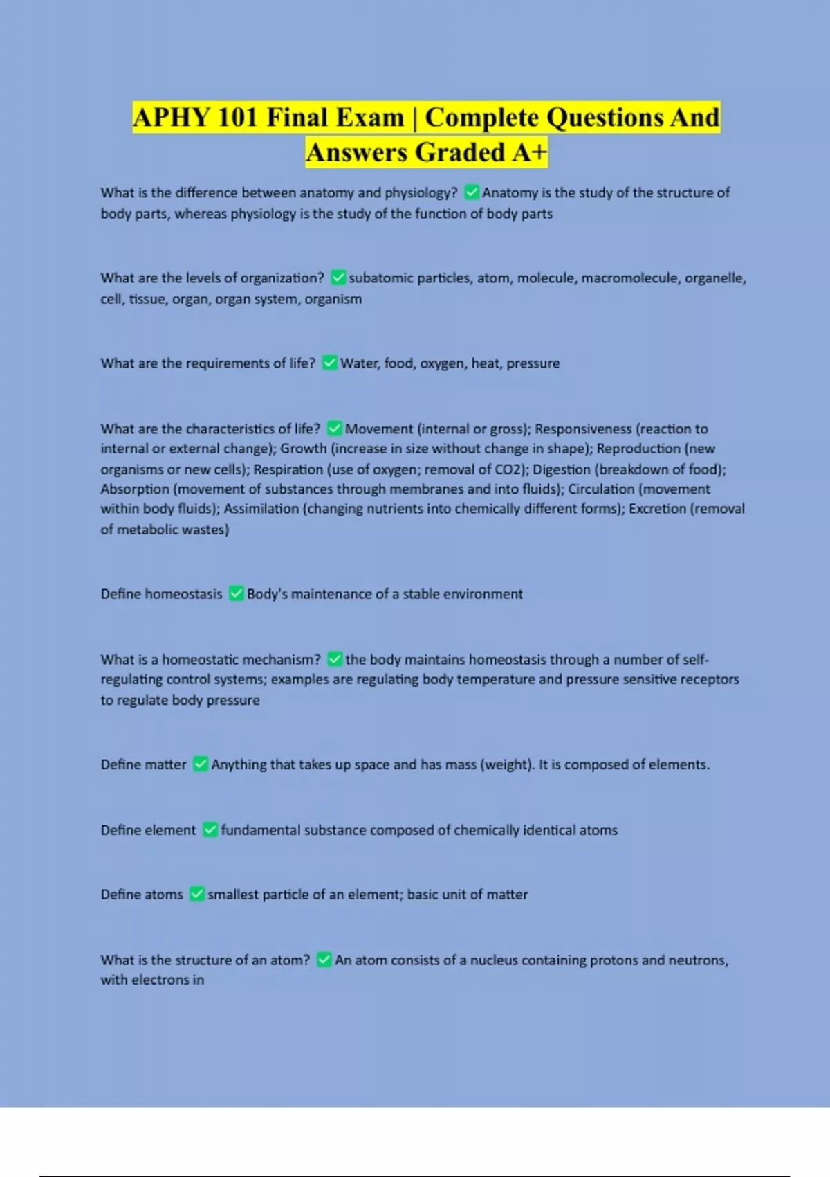 APHY 101 Final Exam | Complete Questions And Answers Graded A+ APHY 101 Final Exam | Complete Questions And Answers Graded A+