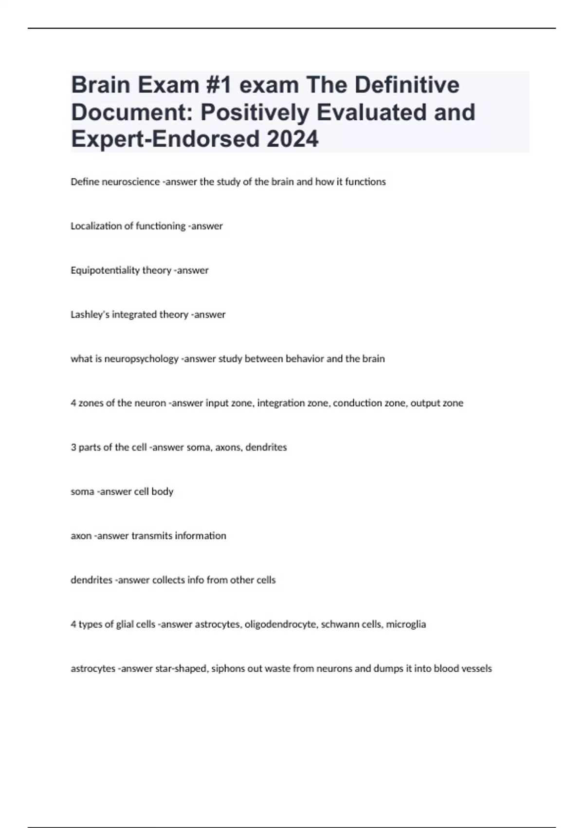 Brain Exam #1 exam The Definitive Document: Positively Evaluated and Expert-Endorsed 2024