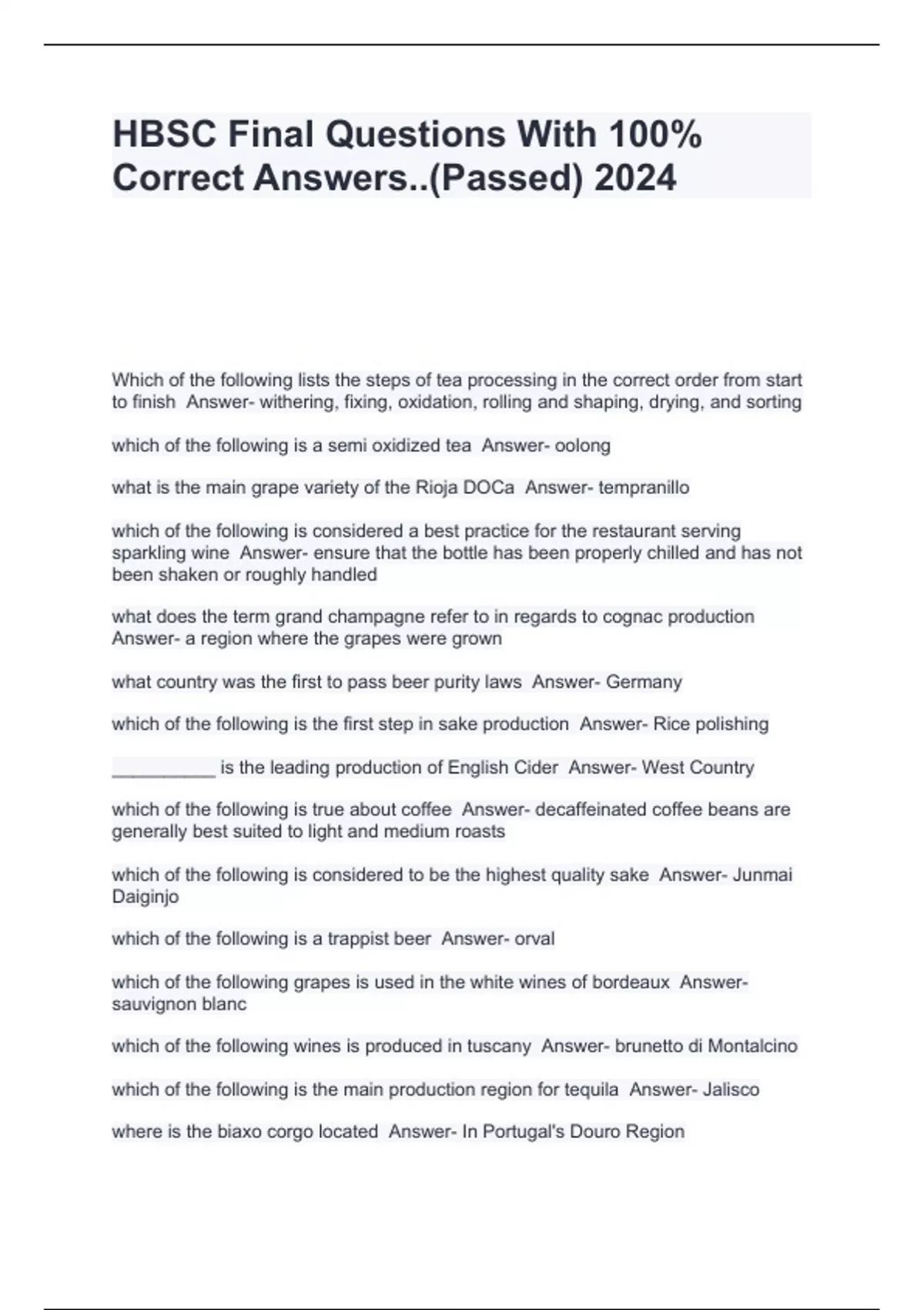 HBSC Final Questions With 100% Correct Answers..(Passed) 2024