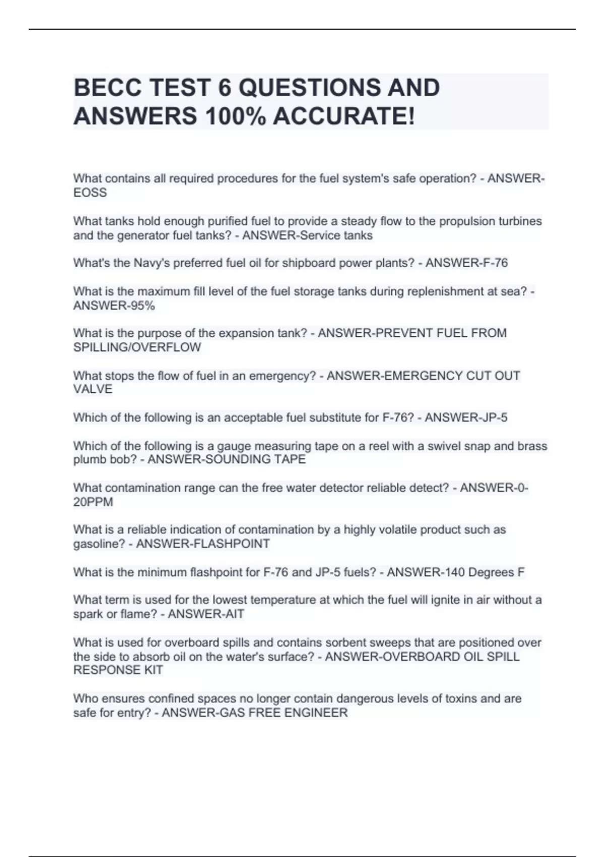 becc test 6 questions and answers stuvia