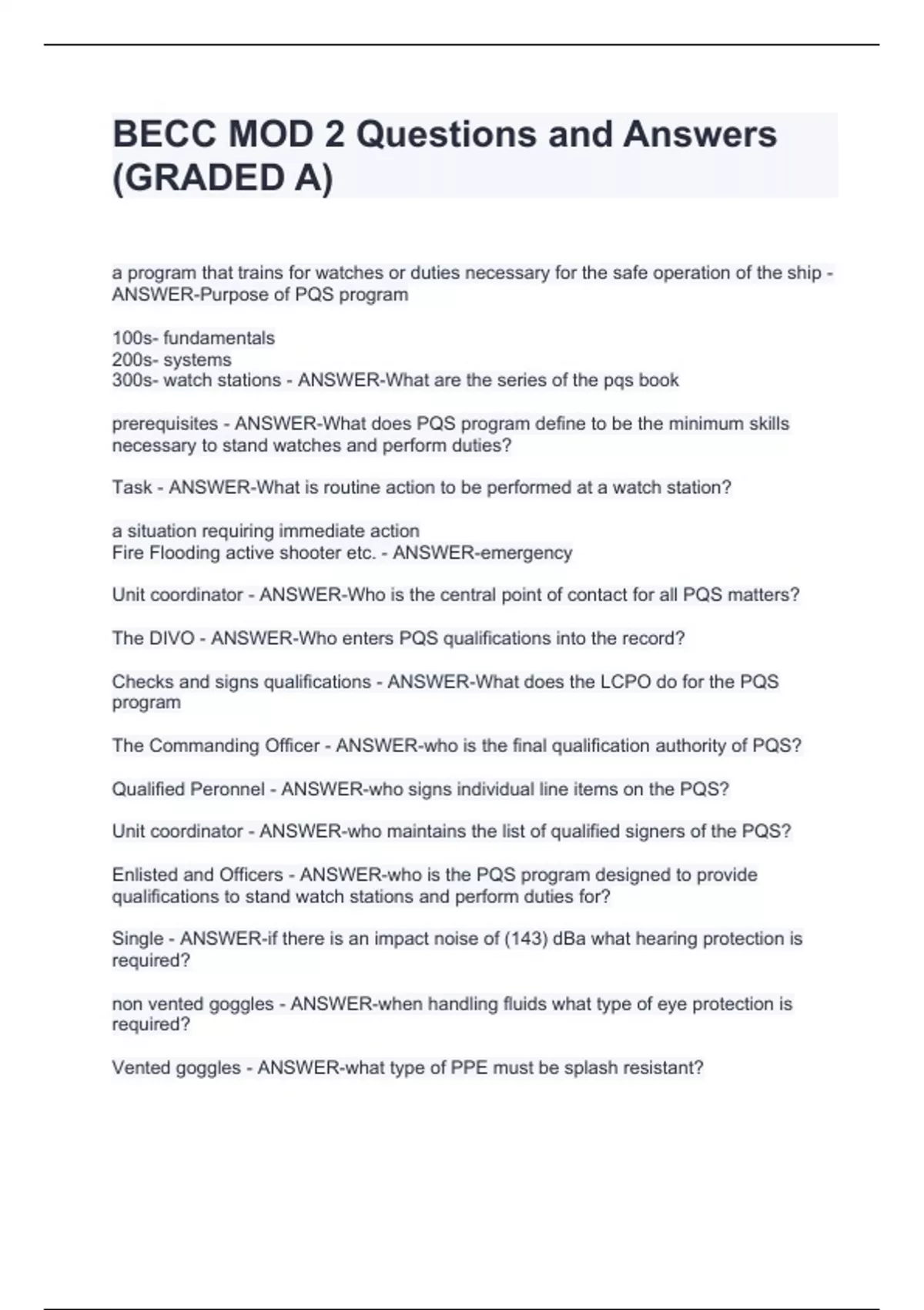 BECC MOD 2 Questions and Answers (GRADED A)
