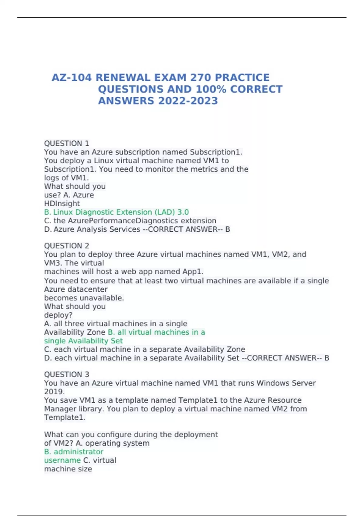 AZ-104 Practice test with complete solutions 100% Correct Answers 2024