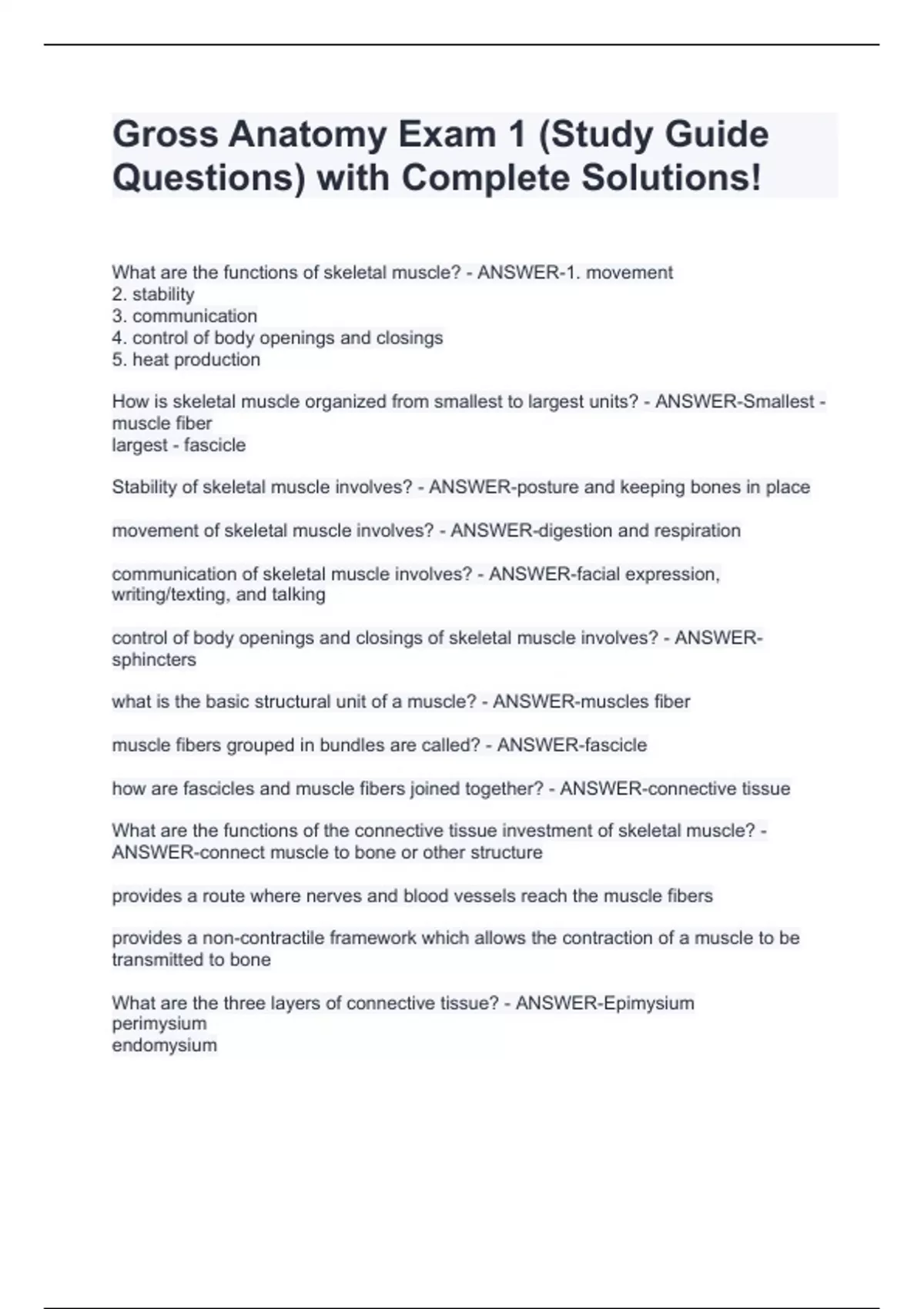 Gross Anatomy Exam 1 (Study Guide Questions) with Complete Solutions! Gross Anatomy Exam 1 (Study Guide Questions) with Complete Solutions! Gross Anatomy Exam 1 (Study Guide Questions) with Complete Solutions! Gross Anatomy Exam 1 (Study Guide Questions) with Complete Solutions! Gross Anatomy Exam 1 (Study Guide Questions) with Complete Solutions! Gross Anatomy Exam 1 (Study Guide Questions) with Complete Solutions! Gross Anatomy Exam 1 (Study Guide Questions) with Complete Solutions! Gross Anatomy Exam 1 (Study Guide Questions) with Complete Solutions! Gross Anatomy Exam 1 (Study Guide Questions) with Complete Solutions!