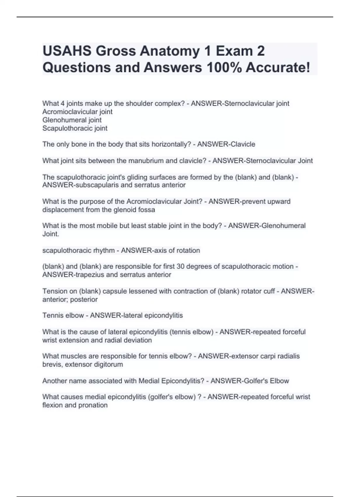 USAHS Gross Anatomy 1 Exam 2 Questions and Answers 100% Accurate! USAHS Gross Anatomy 1 Exam 2 Questions and Answers 100% Accurate! USAHS Gross Anatomy 1 Exam 2 Questions and Answers 100% Accurate! USAHS Gross Anatomy 1 Exam 2 Questions and Answers 100% Accurate! USAHS Gross Anatomy 1 Exam 2 Questions and Answers 100% Accurate! USAHS Gross Anatomy 1 Exam 2 Questions and Answers 100% Accurate! USAHS Gross Anatomy 1 Exam 2 Questions and Answers 100% Accurate! USAHS Gross Anatomy 1 Exam 2 Questions and Answers 100% Accurate! USAHS Gross Anatomy 1 Exam 2 Questions and Answers 100% Accurate!