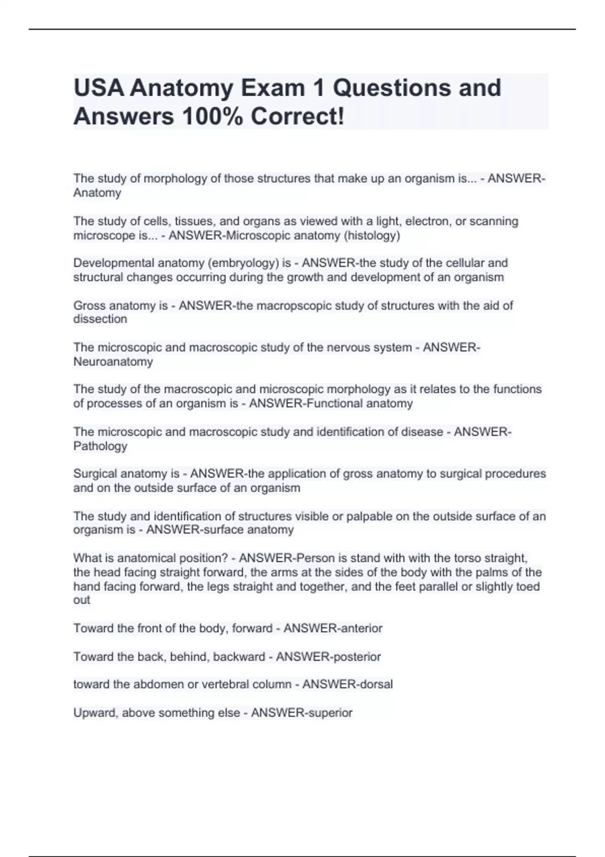 USA Anatomy Exam 1 Questions and Answers 100% Correct!
