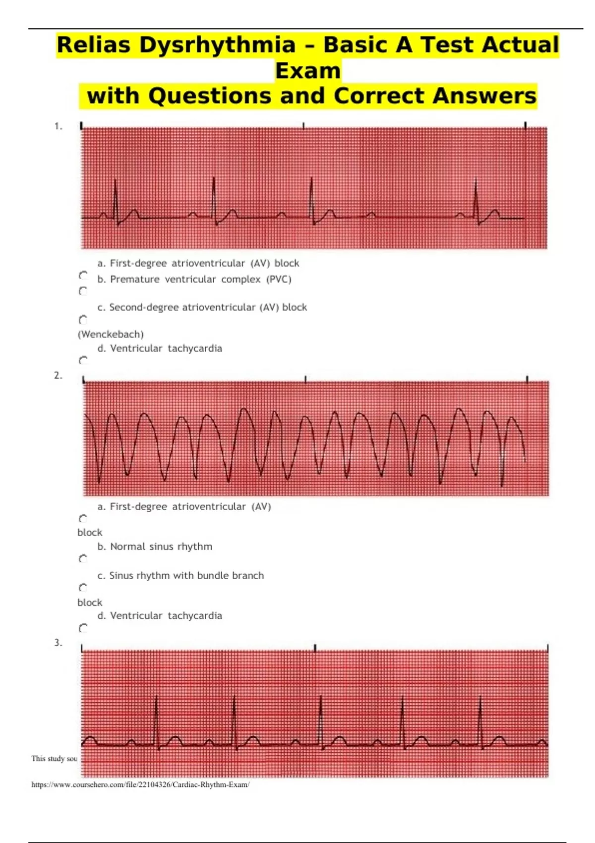 Relias Dysrhythmia – Basic A Test Actual Exam with Questions and Correct Answers Relias Dysrhythmia – Basic A Test Actual Exam with Questions and Correct Answers Relias Dysrhythmia – Basic A Test Actual Exam with Questions and Correct Answers Relias Dysrhythmia – Basic A Test Actual Exam with Questions and Correct Answers