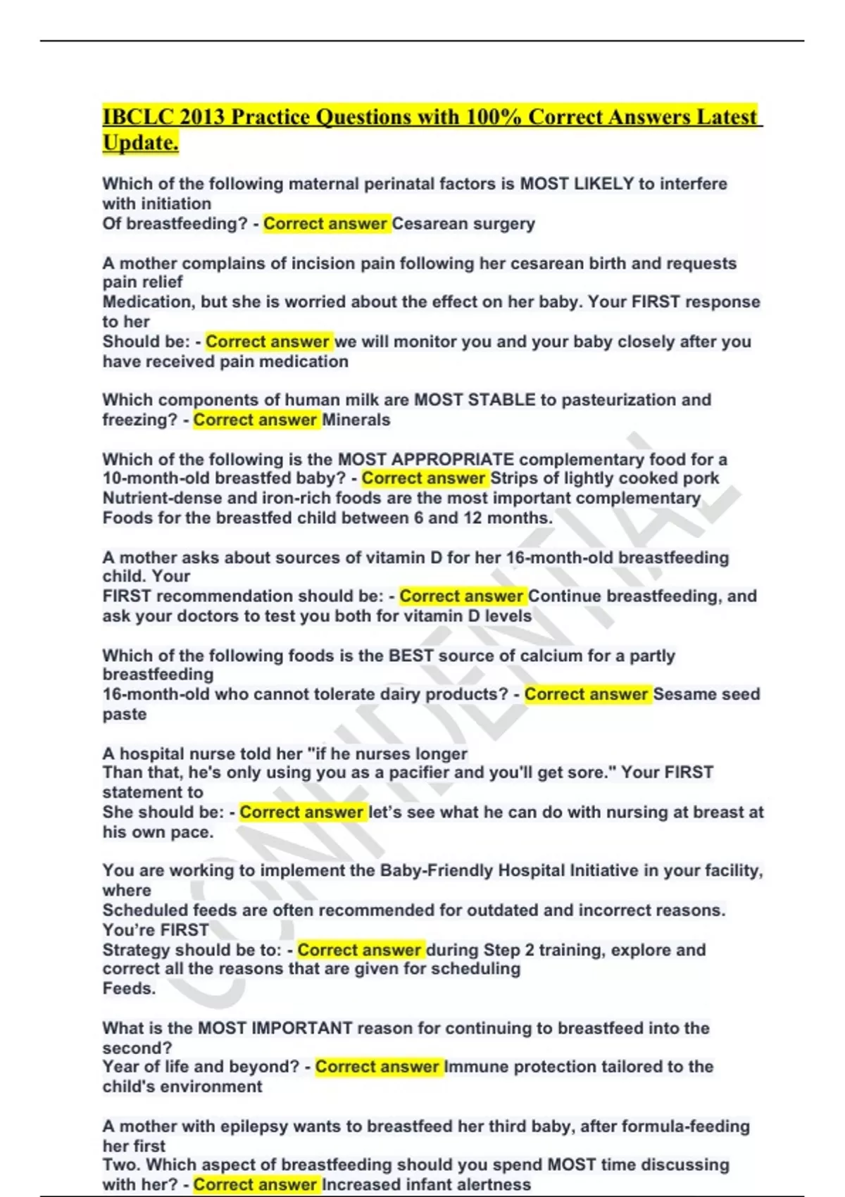 IBCLC 2013 Practice Questions with 100% Correct Answers Latest Update.IBCLC 2013 Practice Questions with 100% Correct Answers Latest Update.