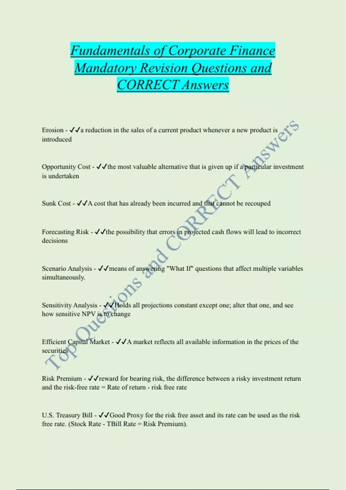 Fundamentals of Corporate Finance Mandatory Revision Questions and CORRECT Answers