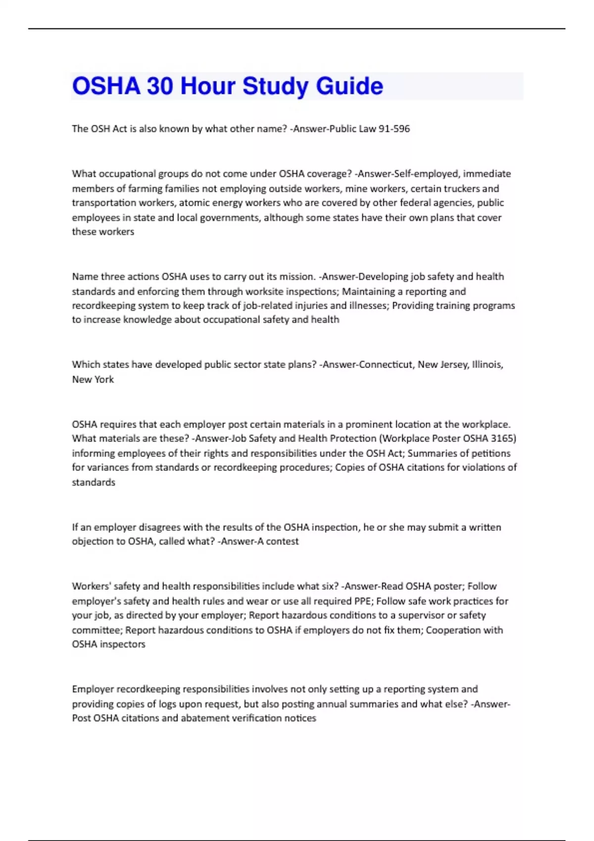 OSHA 30 Hour Study Guide Graded A+