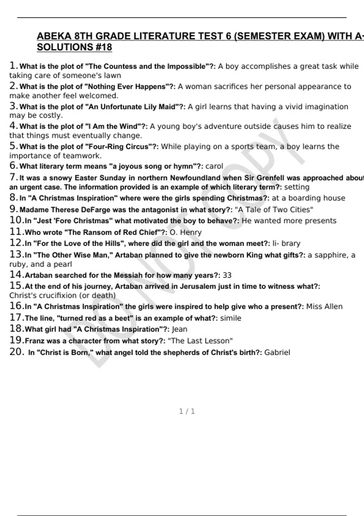 ABEKA 8TH GRADE LITERATURE TEST 6 (SEMESTER EXAM) WITH A+ SOLUTIONS #18