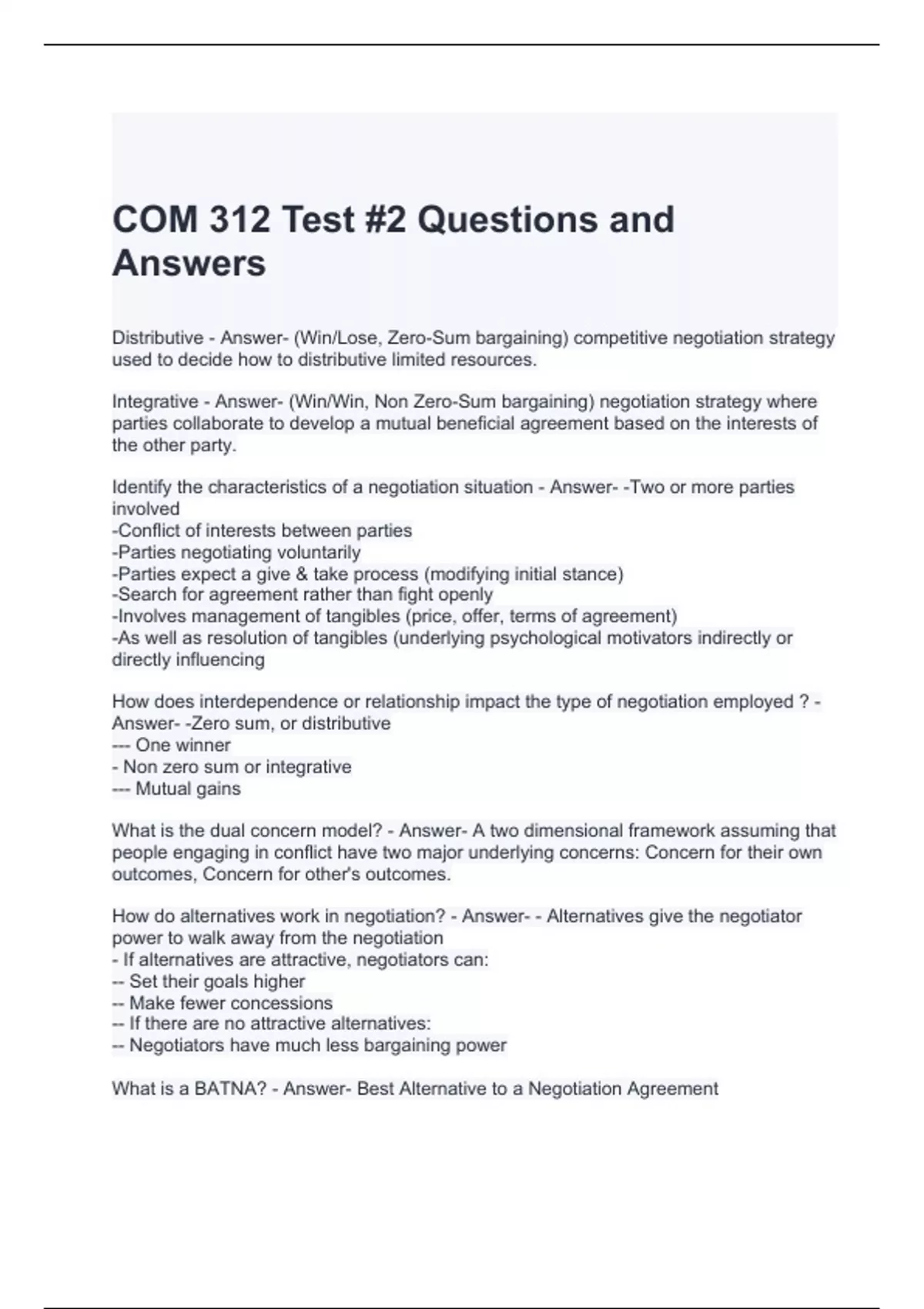 COM 312 Test #2 Questions and Answers
