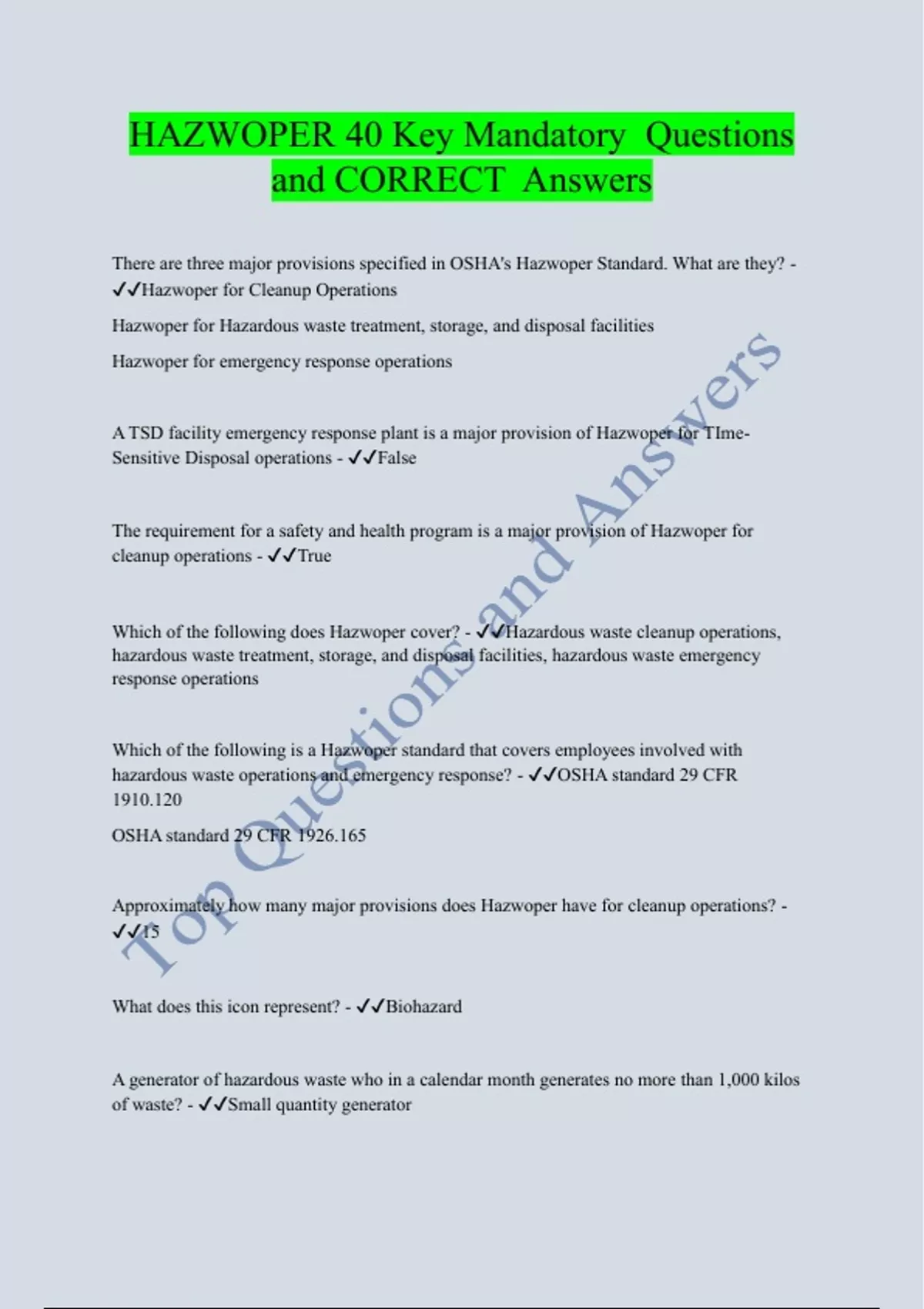 HAZWOPER 40 Key Mandatory Questions and CORRECT Answers