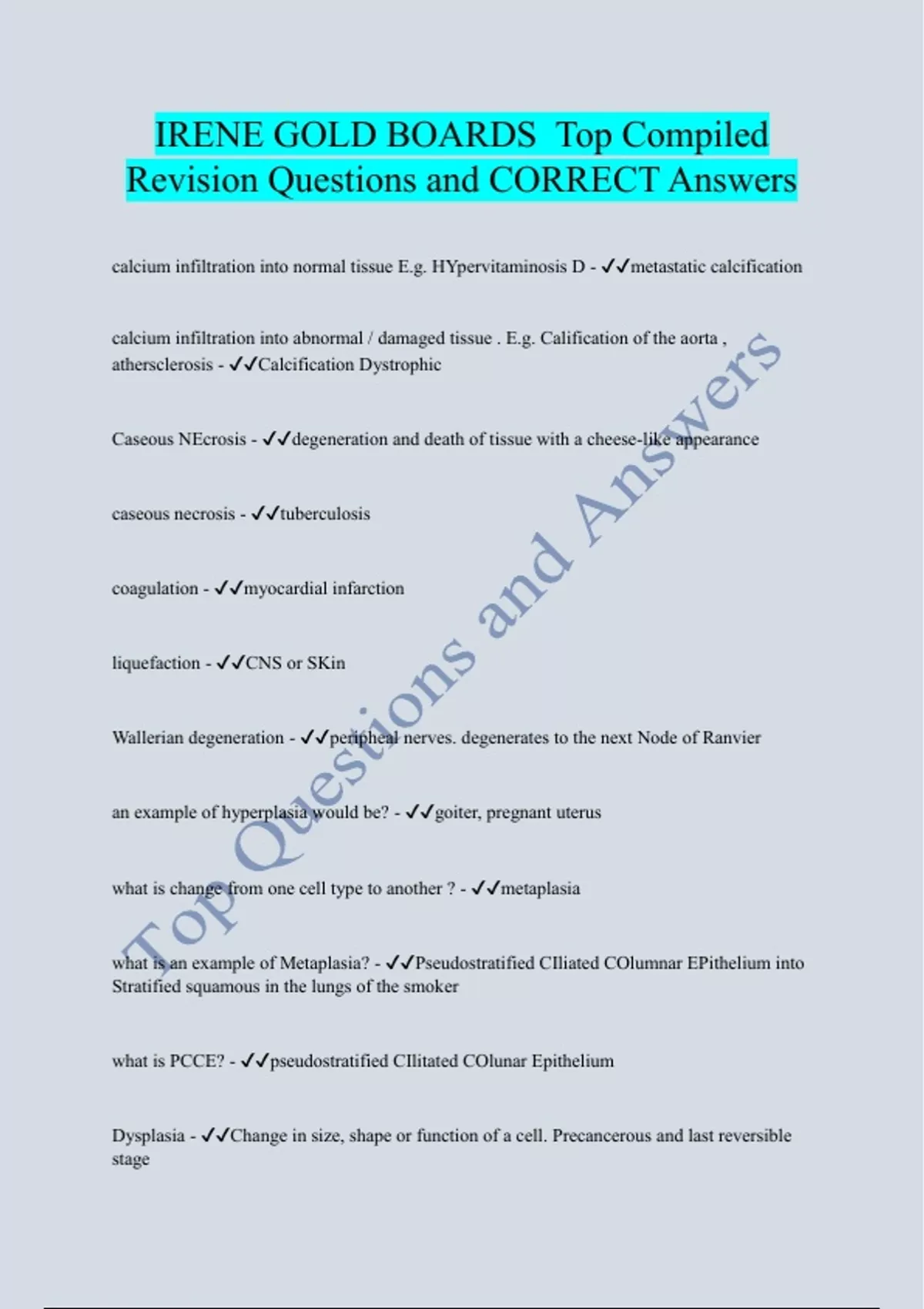 IRENE GOLD BOARDS Top Compiled Revision Questions and CORRECT Answers