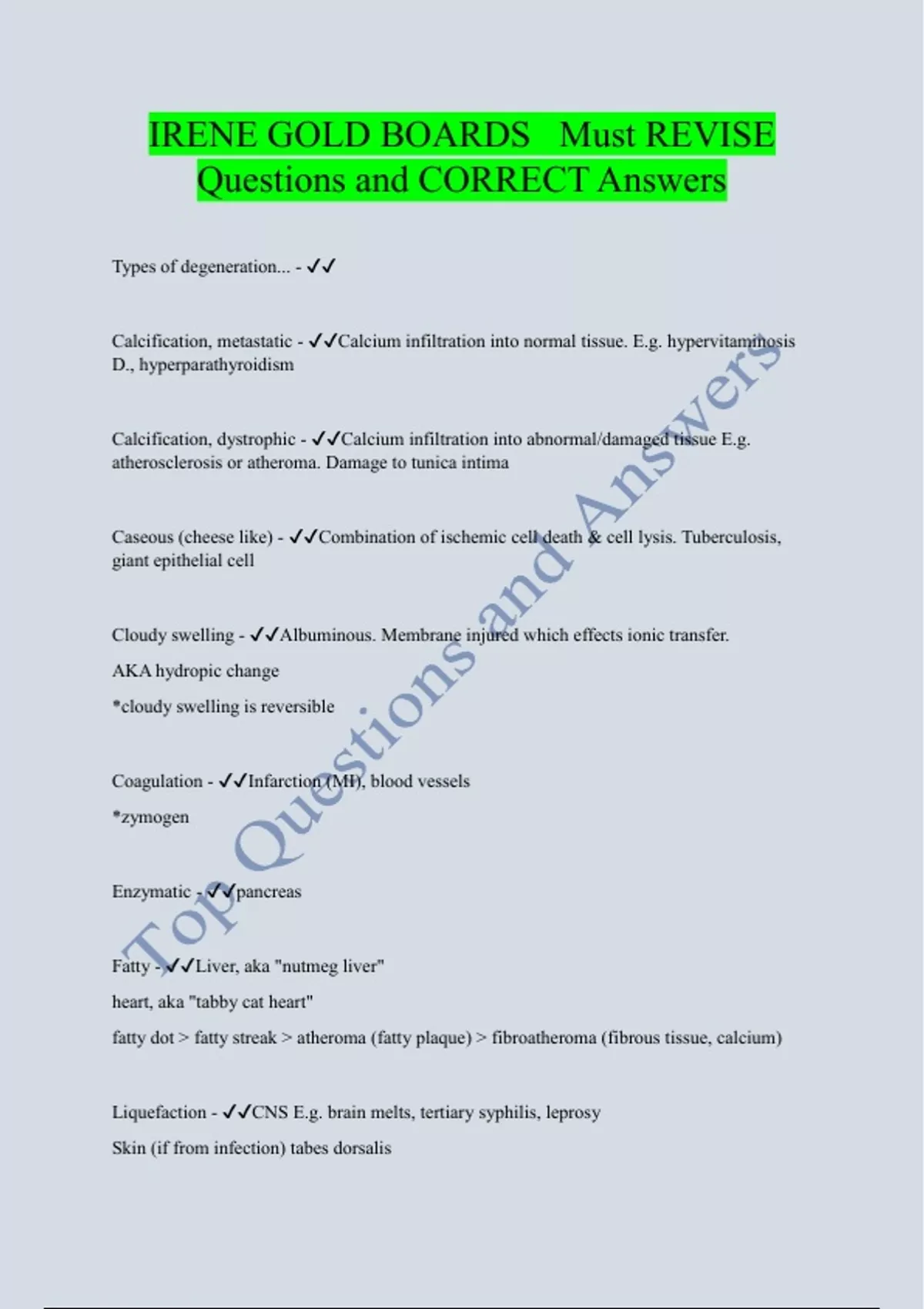 IRENE GOLD BOARDS Must REVISE Questions and CORRECT Answers