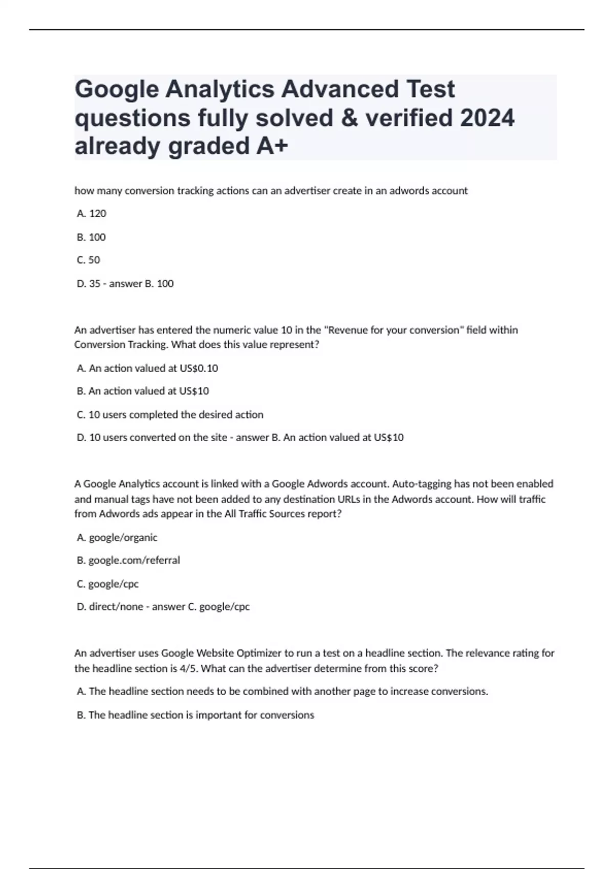Google Analytics Advanced Test questions fully solved & verified 2024 already graded A+.