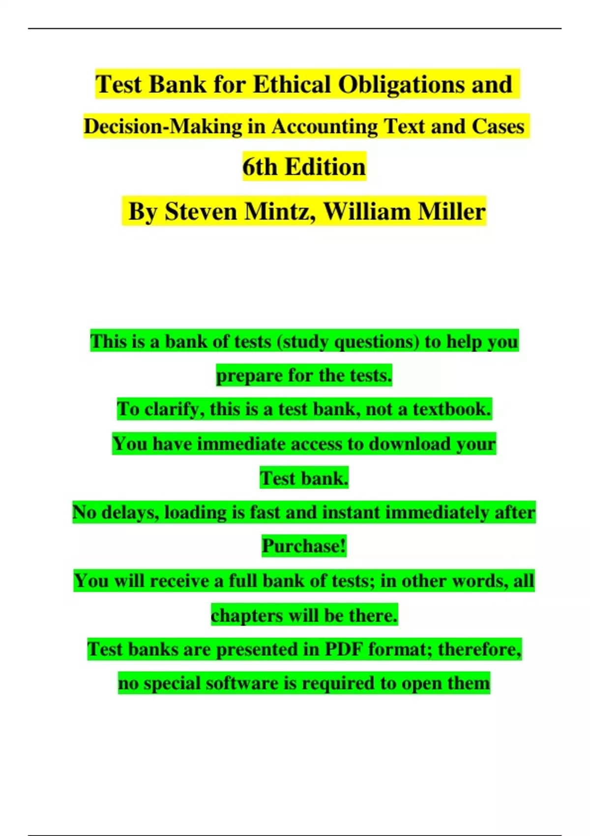 ,Test Bank for Ethical Obligations and Decision-Making in Accounting Text and
