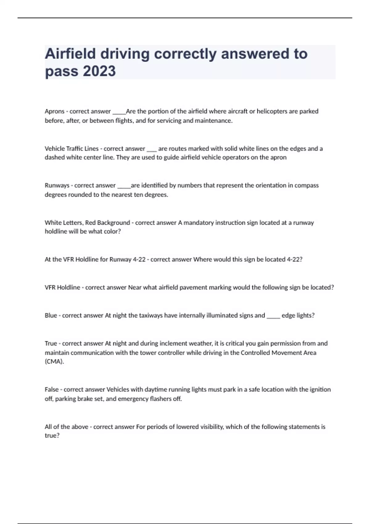 airfield driving correctly answered to pass 2024