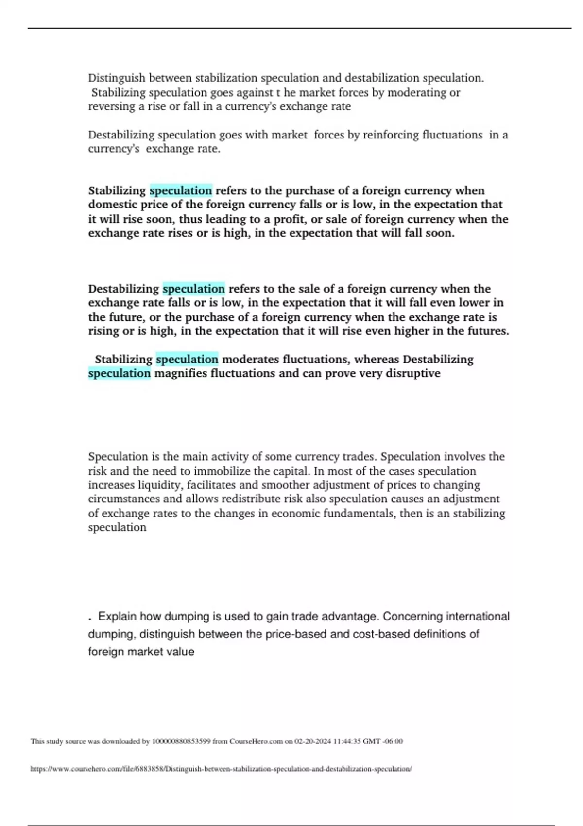 distinguish between stabilization speculation