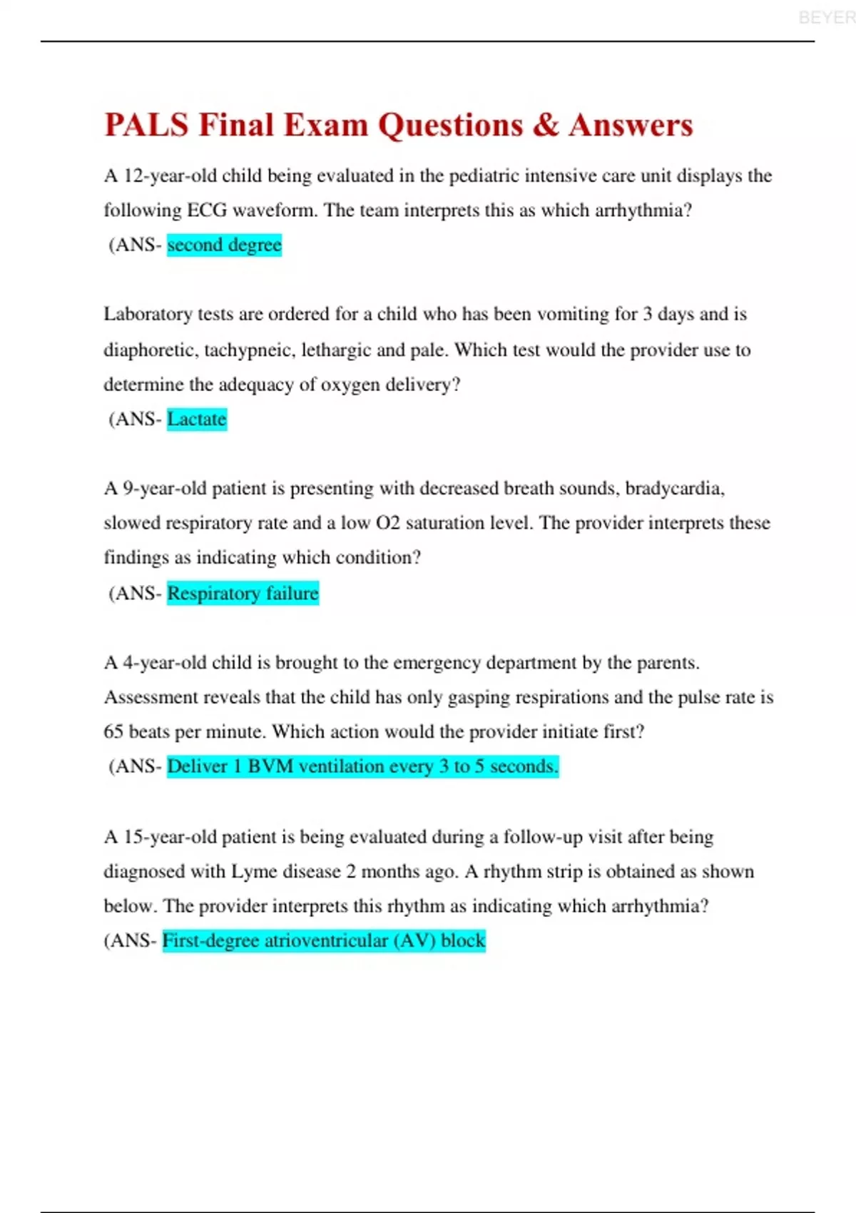 PALS Final Exam; 50 Questions & Answers;Latest Solution/ 100%Verified;PALS Final Exam (Actual Exam)