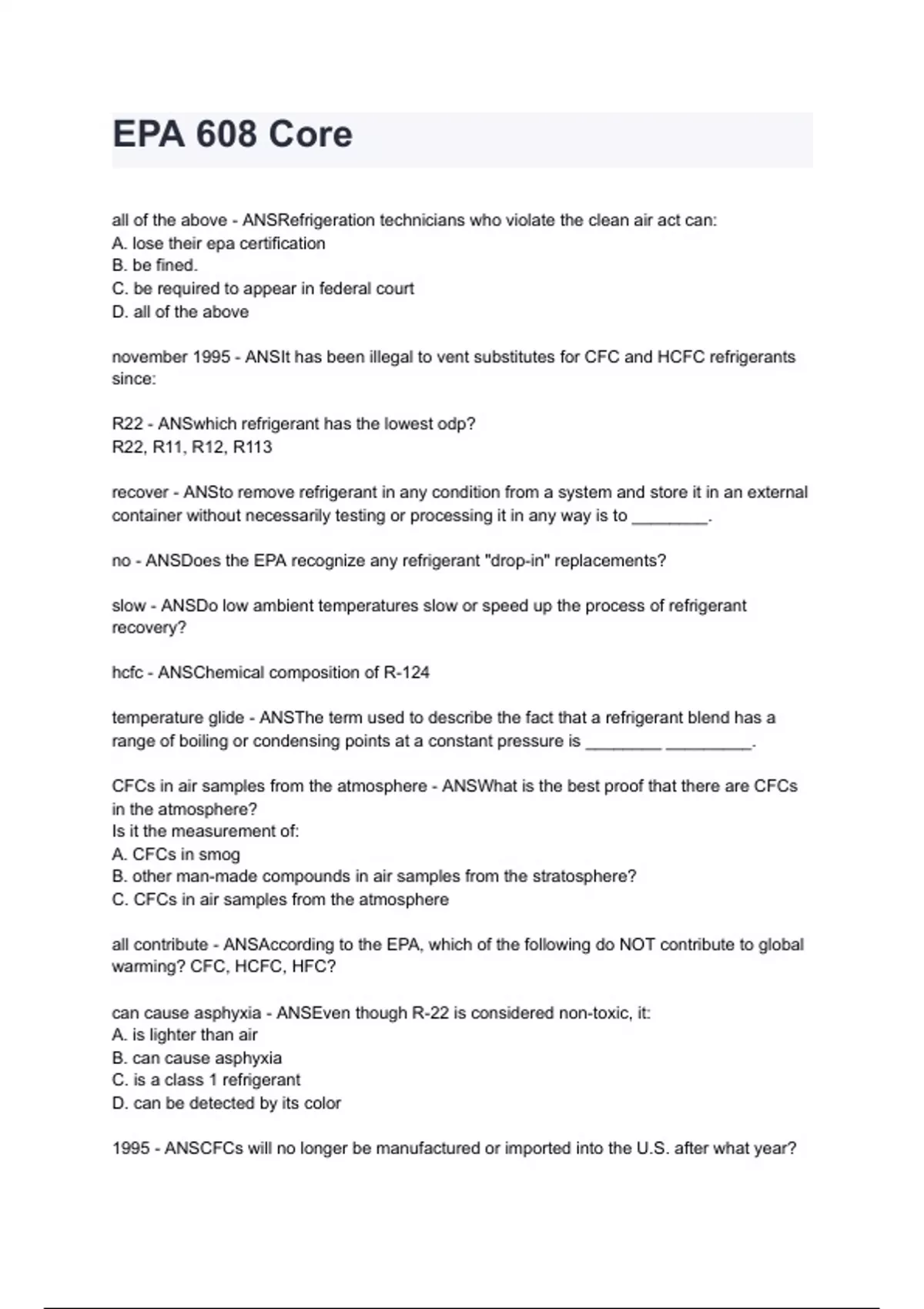 EPA 608 Core 2024/2025 graded A+