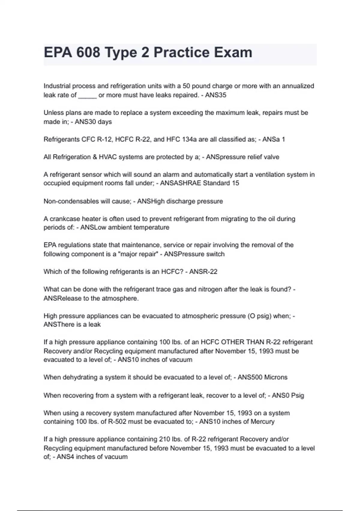 EPA 608 Type 2 Practice Exam 2024/2025 graded A+