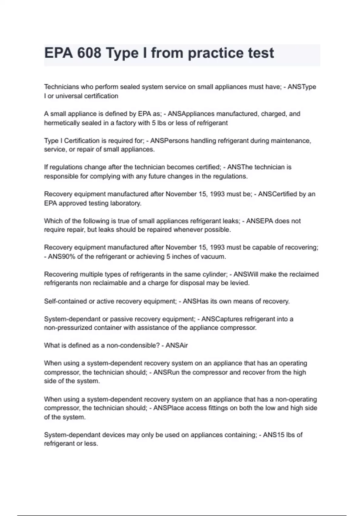 EPA 608 Type I from practice test 2024/2025 graded A+