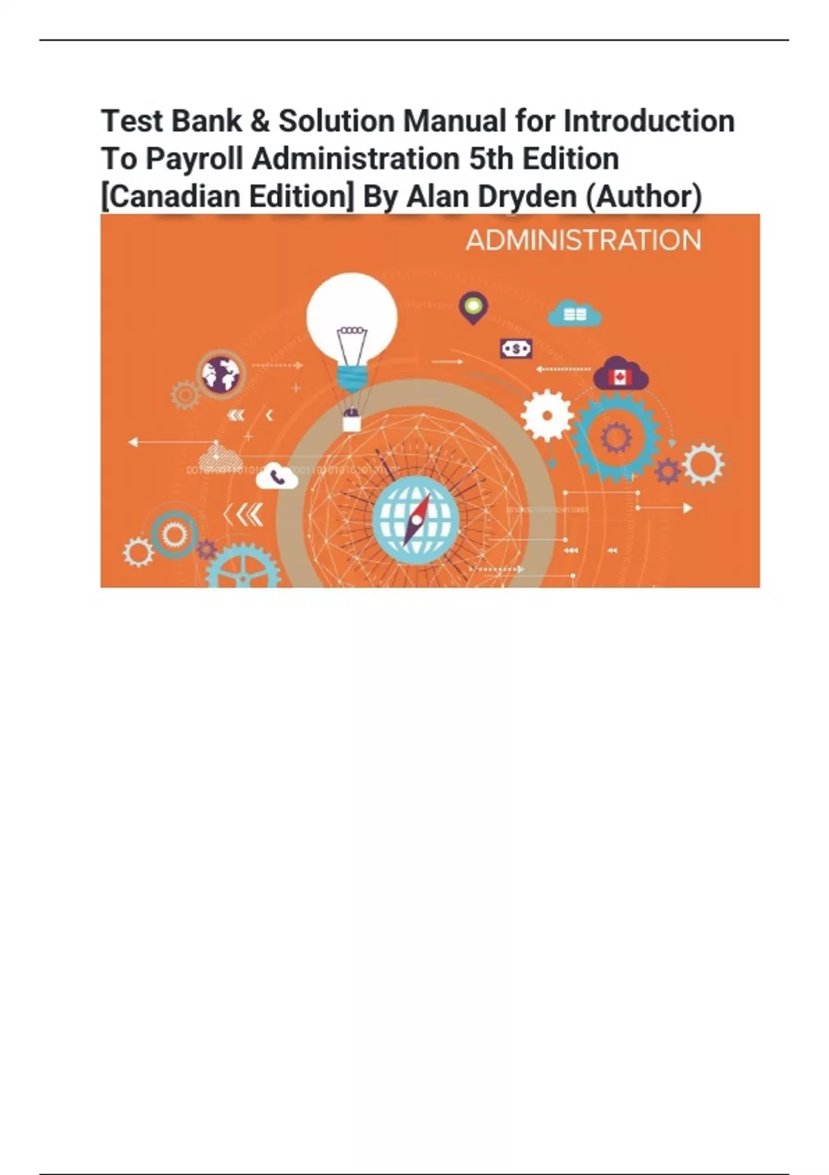 Test Bank & Solution Manual for Introduction To Payroll Administration 5th Edition [Canadian Edition] By Alan Dryden (Author)