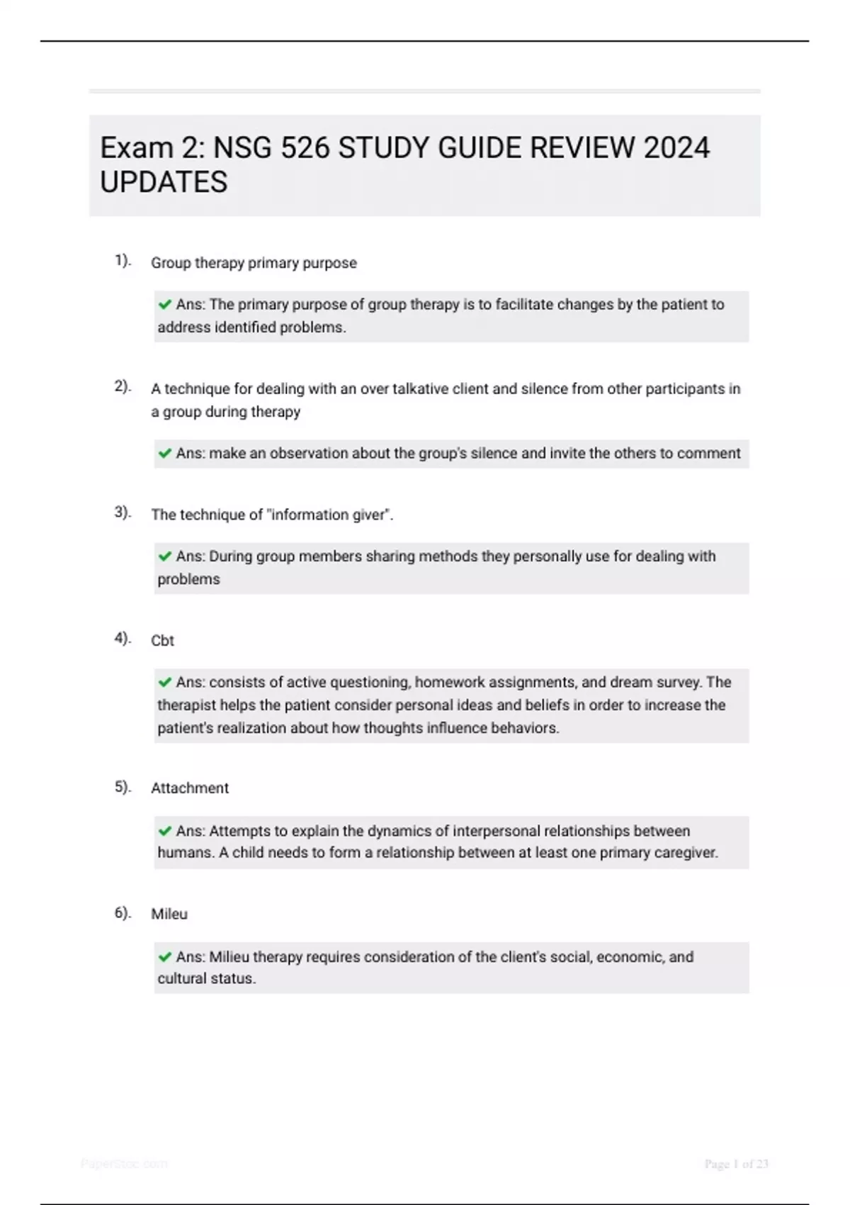 Exam 2: NSG 526 STUDY GUIDE REVIEW 2024