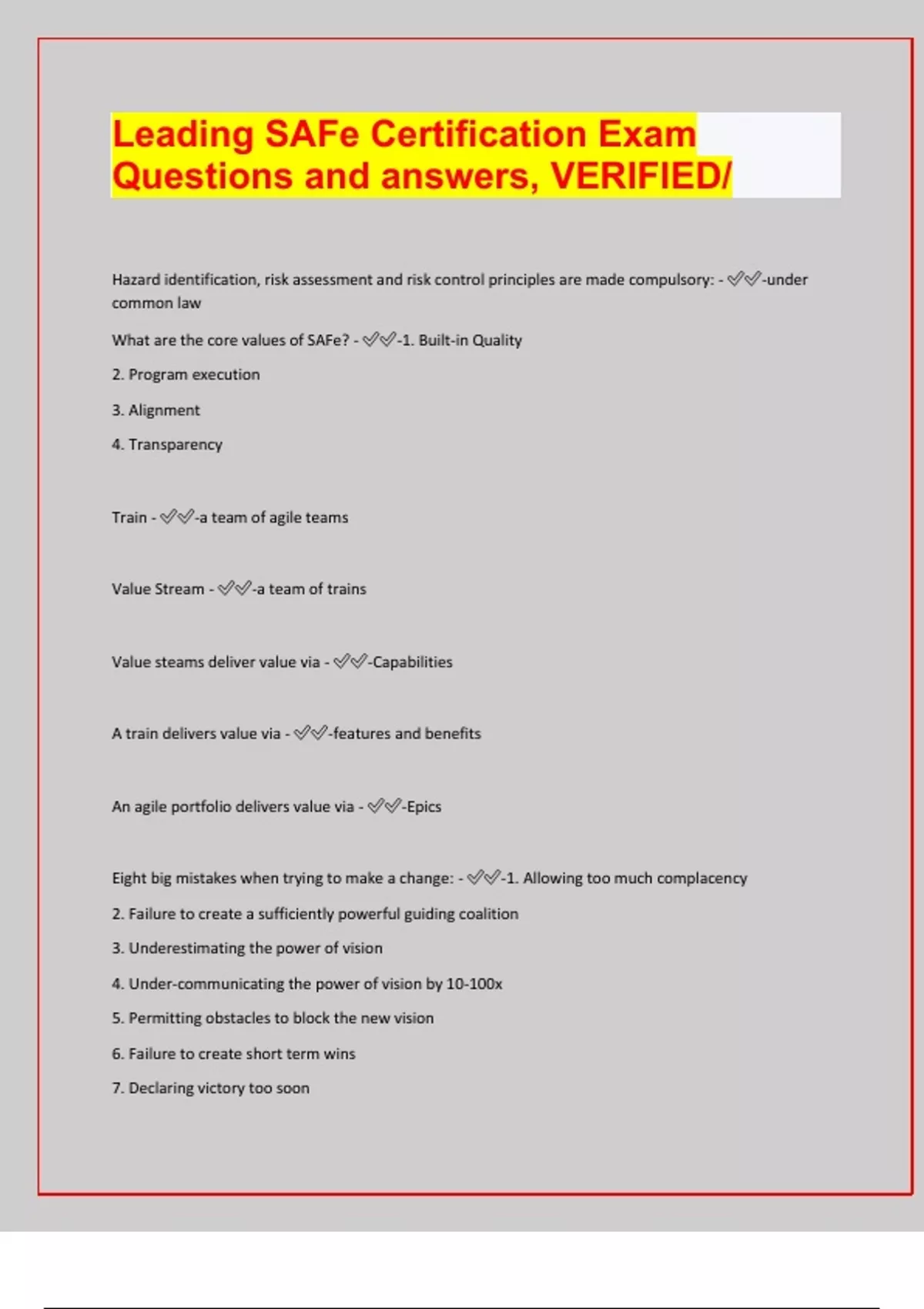 Leading SAFe Certification Exam Questions and answers, VERIFIED// LATEST EXAM PREDICTIONS UPDATES, APPROVED.