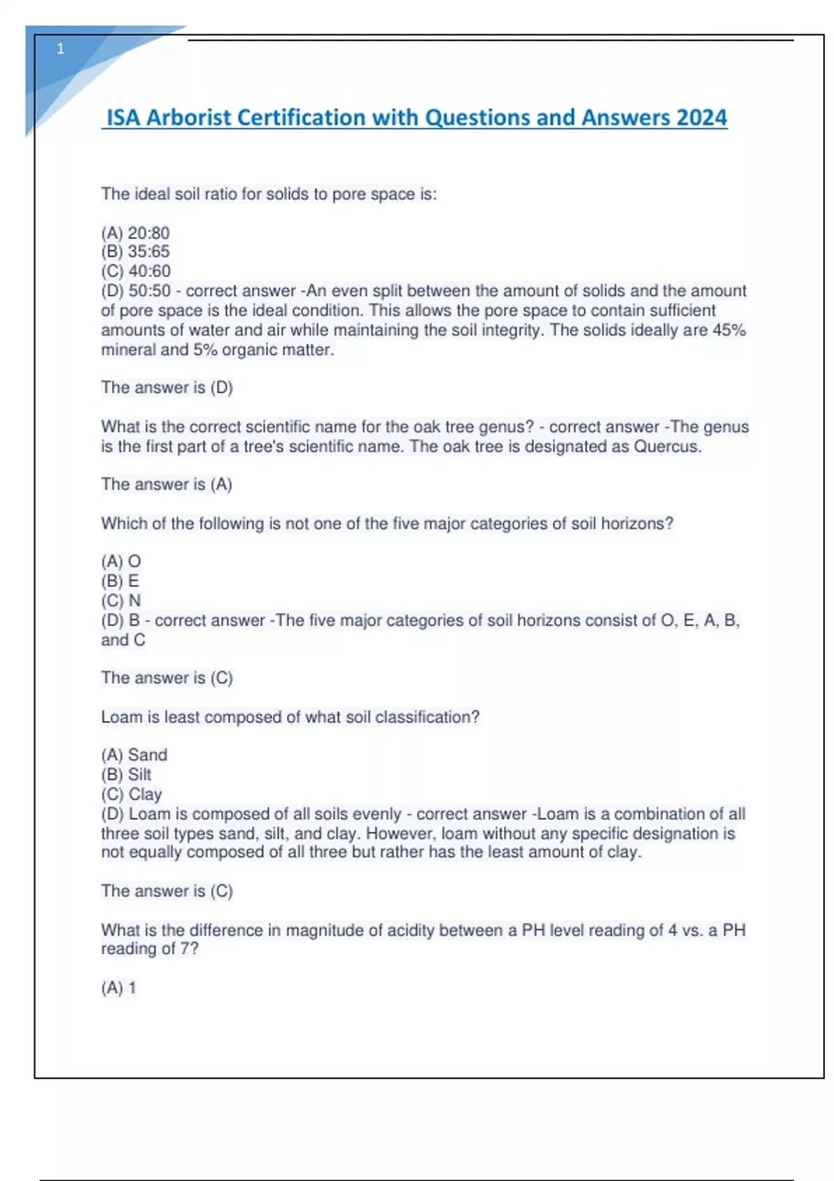 ISA Arborist Certification with Questions and Answers 2024.
