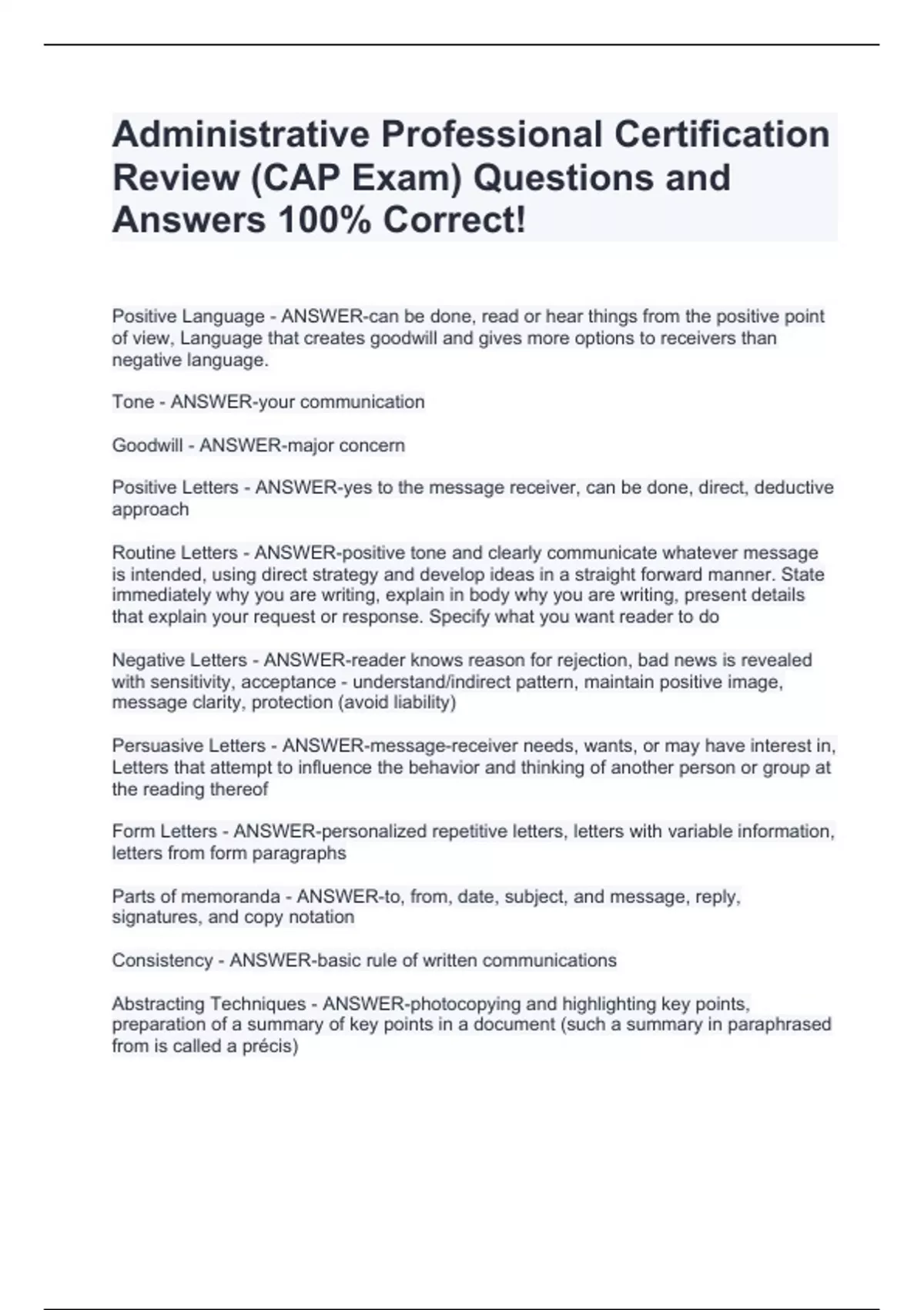 Administrative Professional Certification Review (CAP Exam) Questions and Answers 100% Correct!Administrative Professional Certification Review (CAP Exam) Questions and Answers 100% Correct!Administrative Professional Certification Review (CAP Exam) Questions and Answers 100% Correct!Administrative Professional Certification Review (CAP Exam) Questions and Answers 100% Correct!Administrative Professional Certification Review (CAP Exam) Questions and Answers 100% Correct!Administrative Professional Certification Review (CAP Exam) Questions and Answers 100% Correct!Administrative Professional Certification Review (CAP Exam) Questions and Answers 100% Correct!Administrative Professional Certification Review (CAP Exam) Questions and Answers 100% Correct!Administrative Professional Certification Review (CAP Exam) Questions and Answers 100% Correct!Administrative Professional Certification Review (CAP Exam) Questions and Answers 100% Correct!v