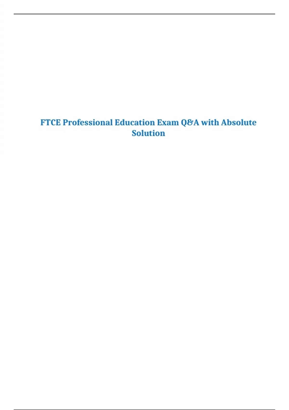 FTCE Professional Education Exam Q&A with Absolute Solution