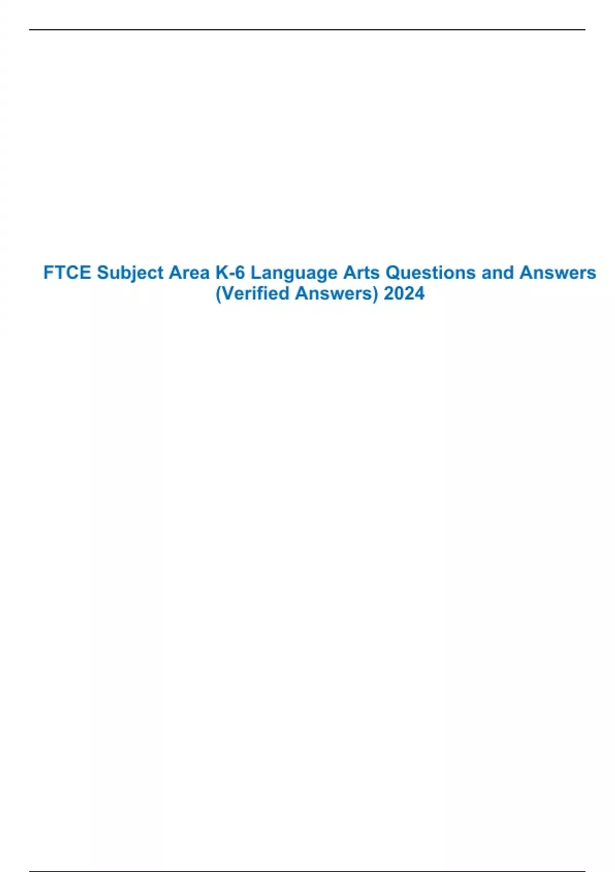 FTCE Subject Area K-6 Language Arts Questions and Answers (Verified Answers) 2024