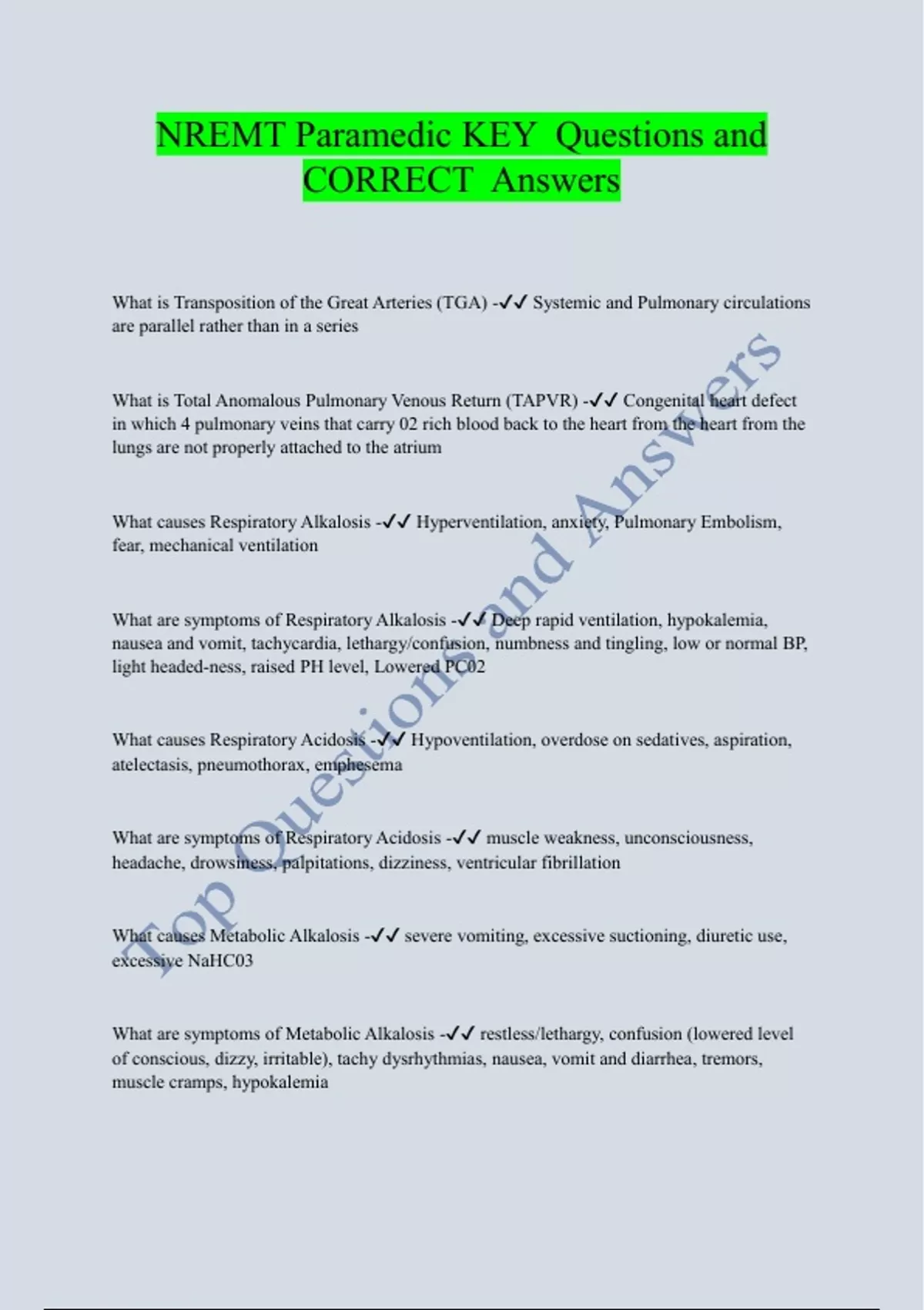 NREMT Paramedic KEY Questions and CORRECT Answers