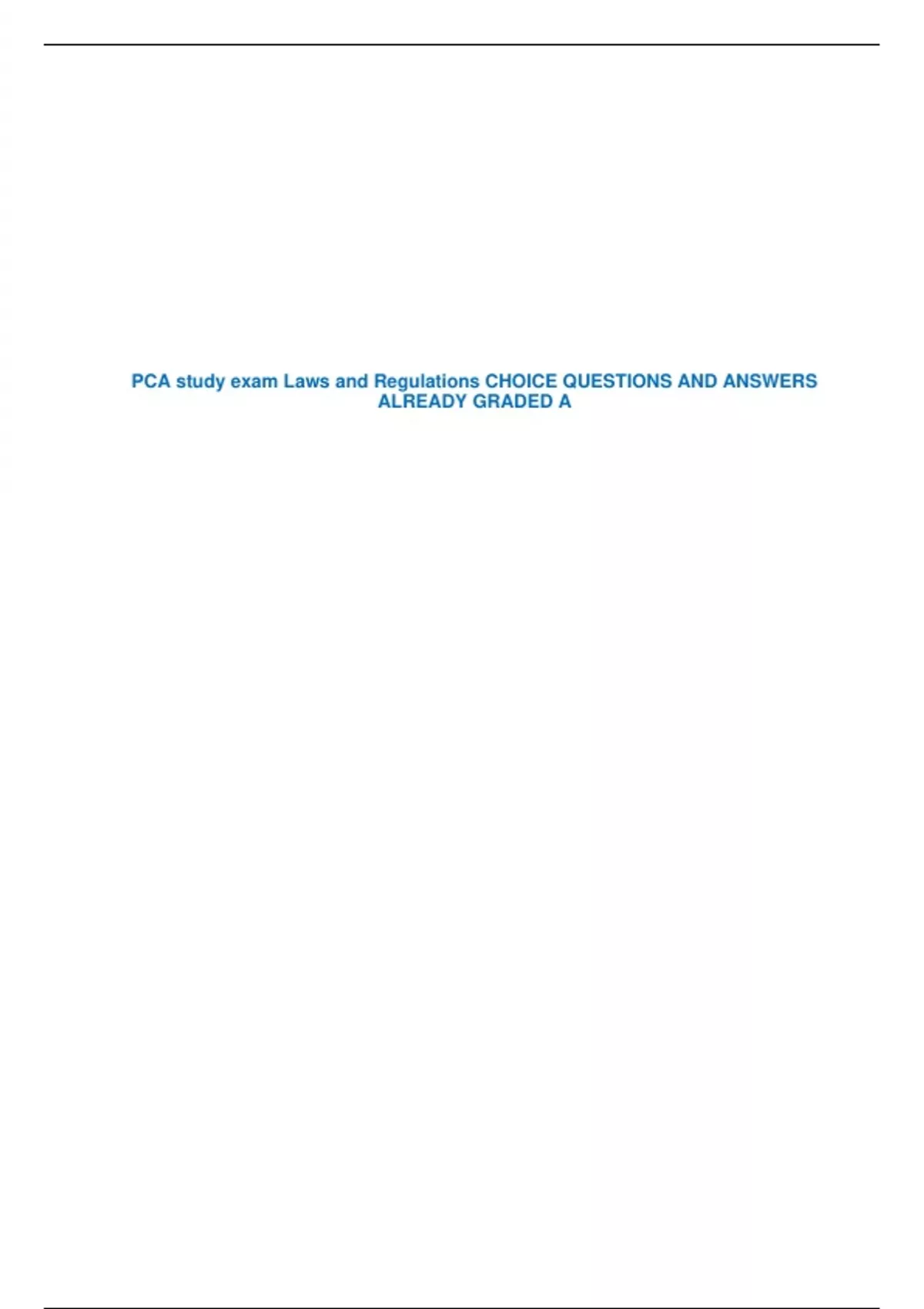 PCA study exam Laws and Regulations CHOICE QUESTIONS AND ANSWERS ALREADY GRADED A