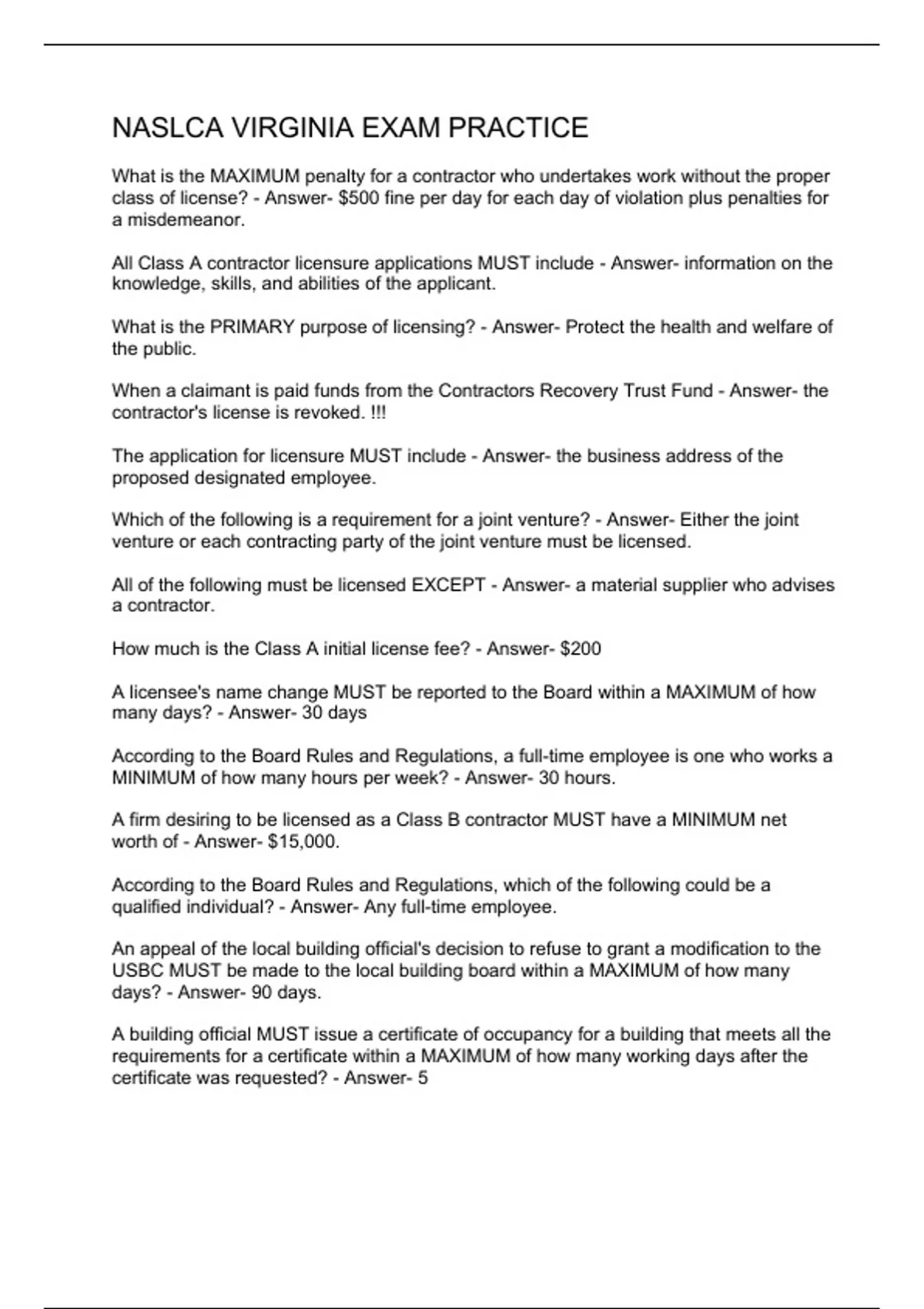 VA CONTRACTOR GENERAL QUESTIONS 2 Exam (elaborations) VA CONTRACTORS: GENERAL (CLASS A OR B) 3 Exam (elaborations) VA CONTRACTORS: VA ADVANCED (CLASS A) 4 Exam (elaborations) VIRGINIA CONTRACTOR PRACTICE TEST 5 Exam (elaborations) VA CONTRACTORS: VIRG