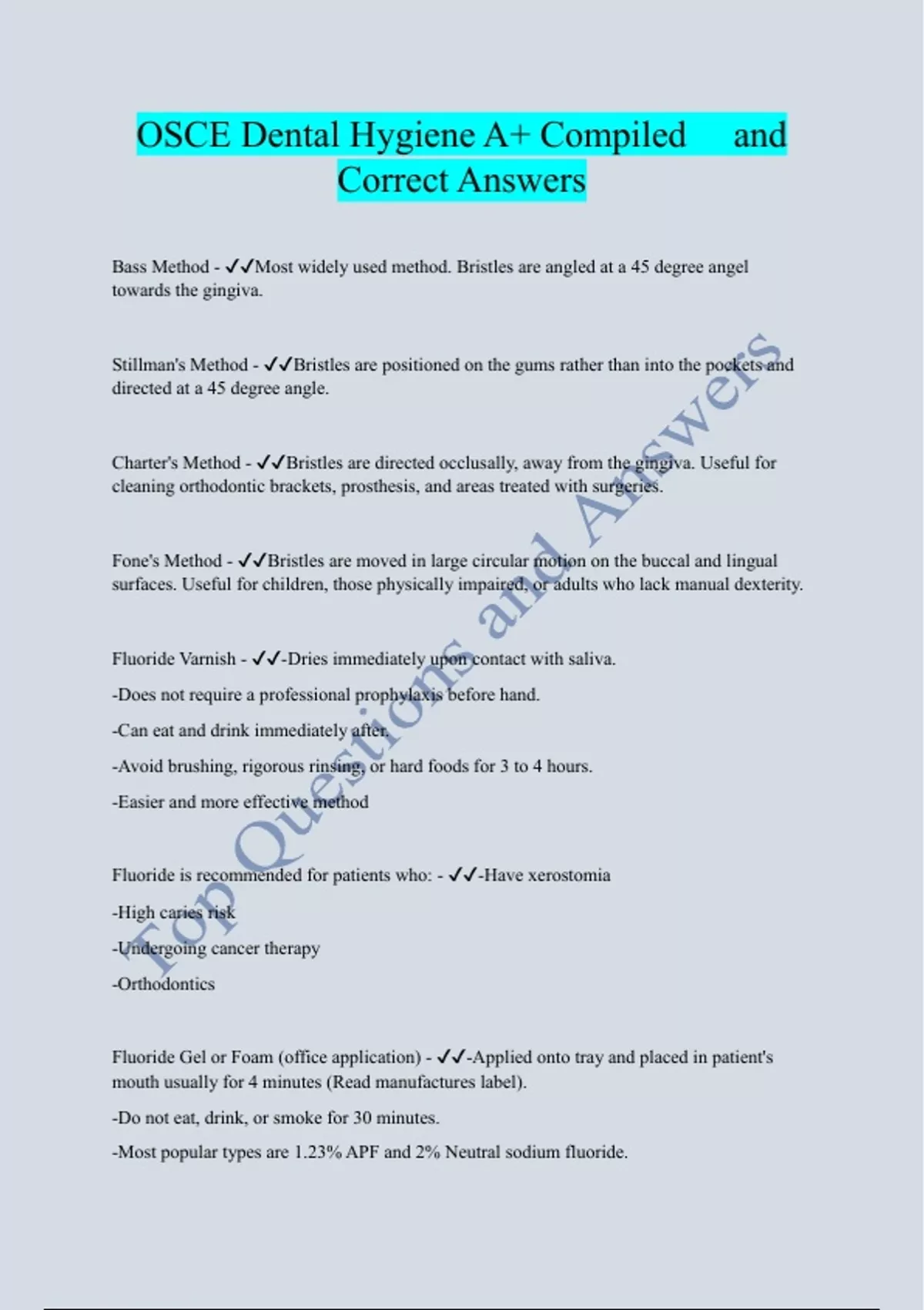 OSCE Dental Hygiene A+ Compiled and Correct Answers