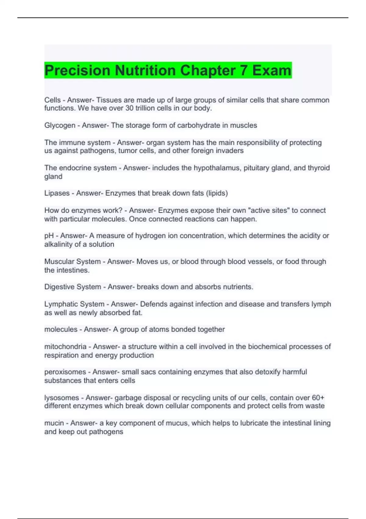 Precision Nutrition Chapter 7 Exam with correct Answers