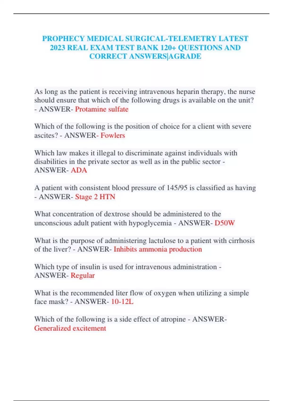PROPHECY MEDICAL SURGICAL-TELEMETRY LATEST 2023 REAL EXAM TEST BANK 120+ QUESTIONS AND CORRECT ANSWERS A+ GRADE