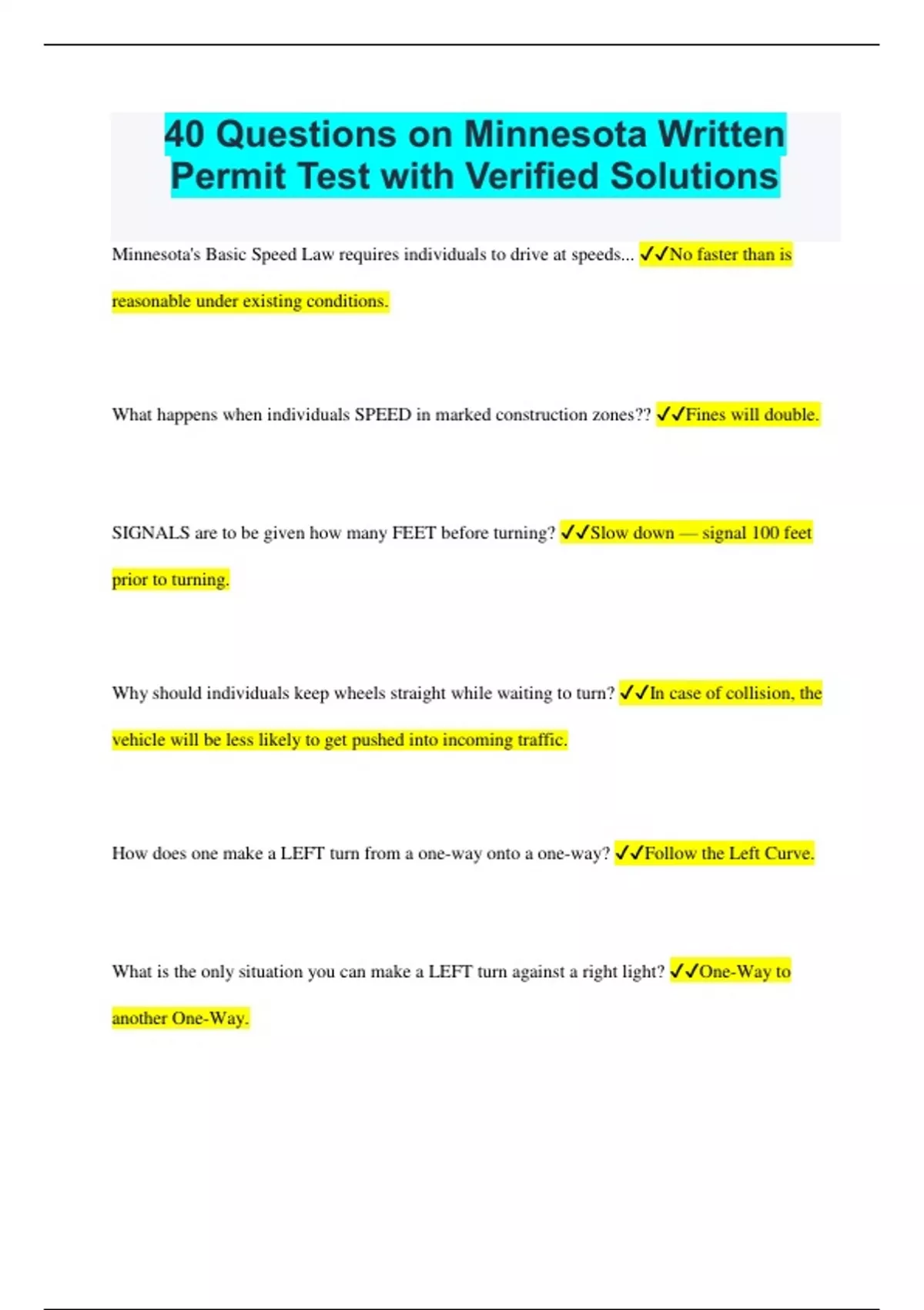 40 Questions on Minnesota Written Permit Test with Verified Solutions