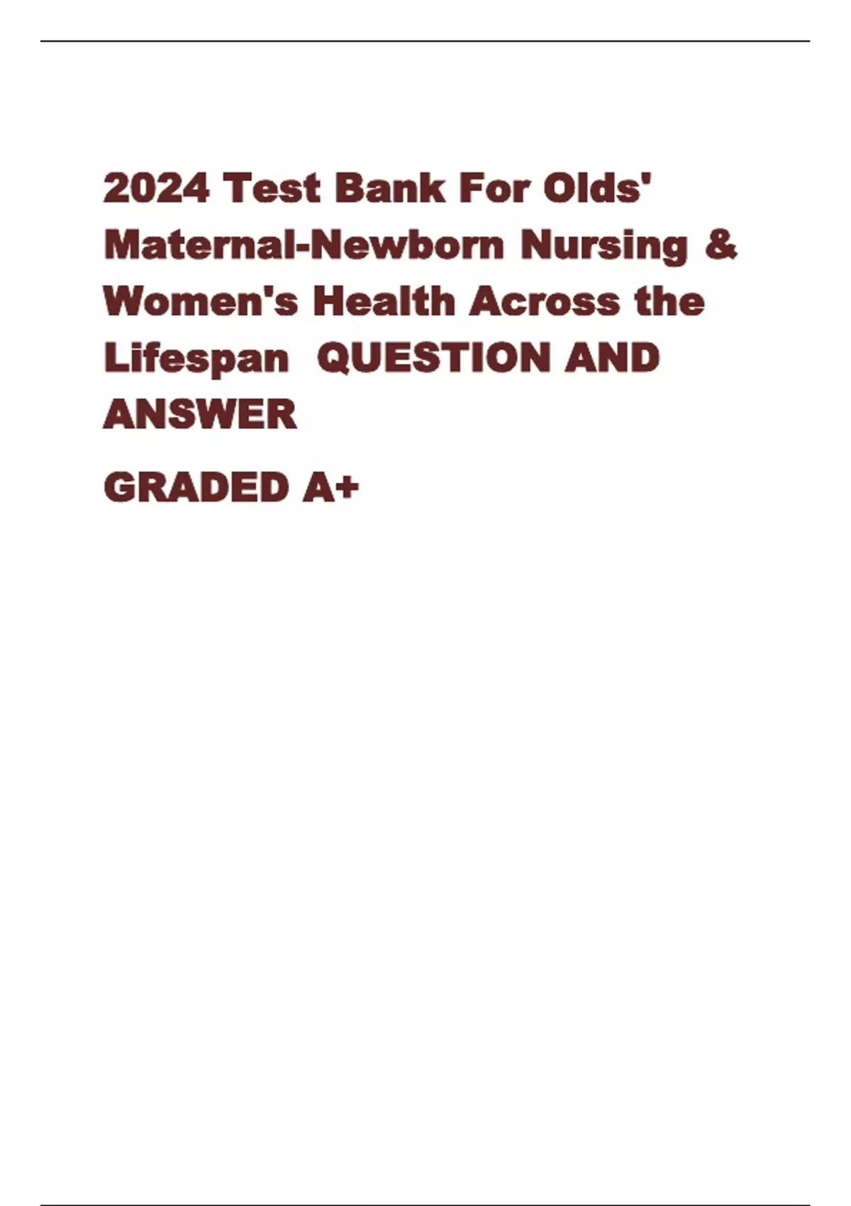 2024 Test Bank For Olds' Maternal-Newborn Nursing & Women's Health Across the Lifespan QUESTION AND ANSWER GRADED A+