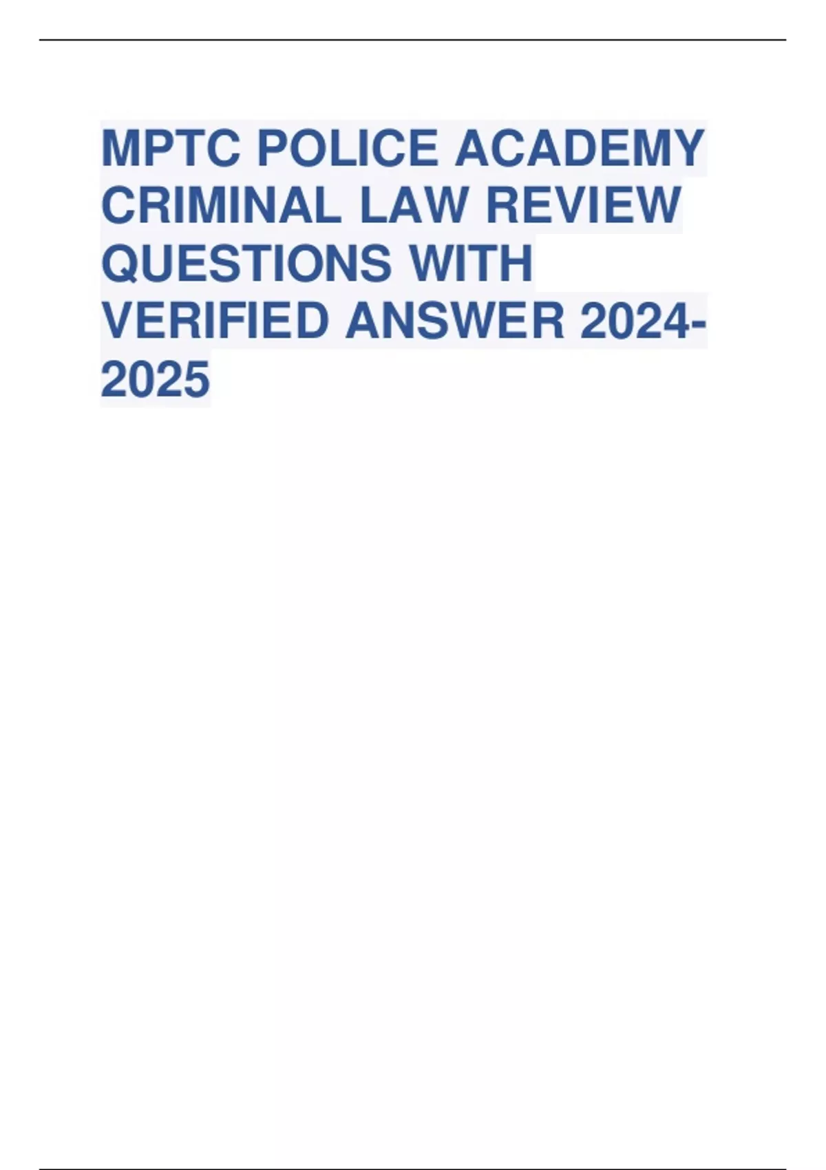 MPTC POLICE ACADEMY CRIMINAL LAW REVIEW QUESTIONS WITH VERIFIED ANSWER