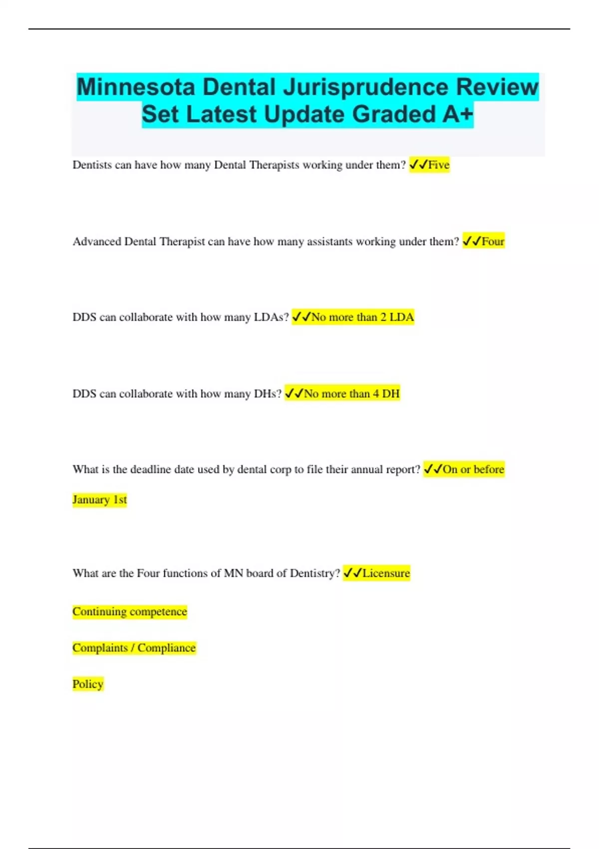 Minnesota Dental Jurisprudence Review Set Latest Update Graded A+