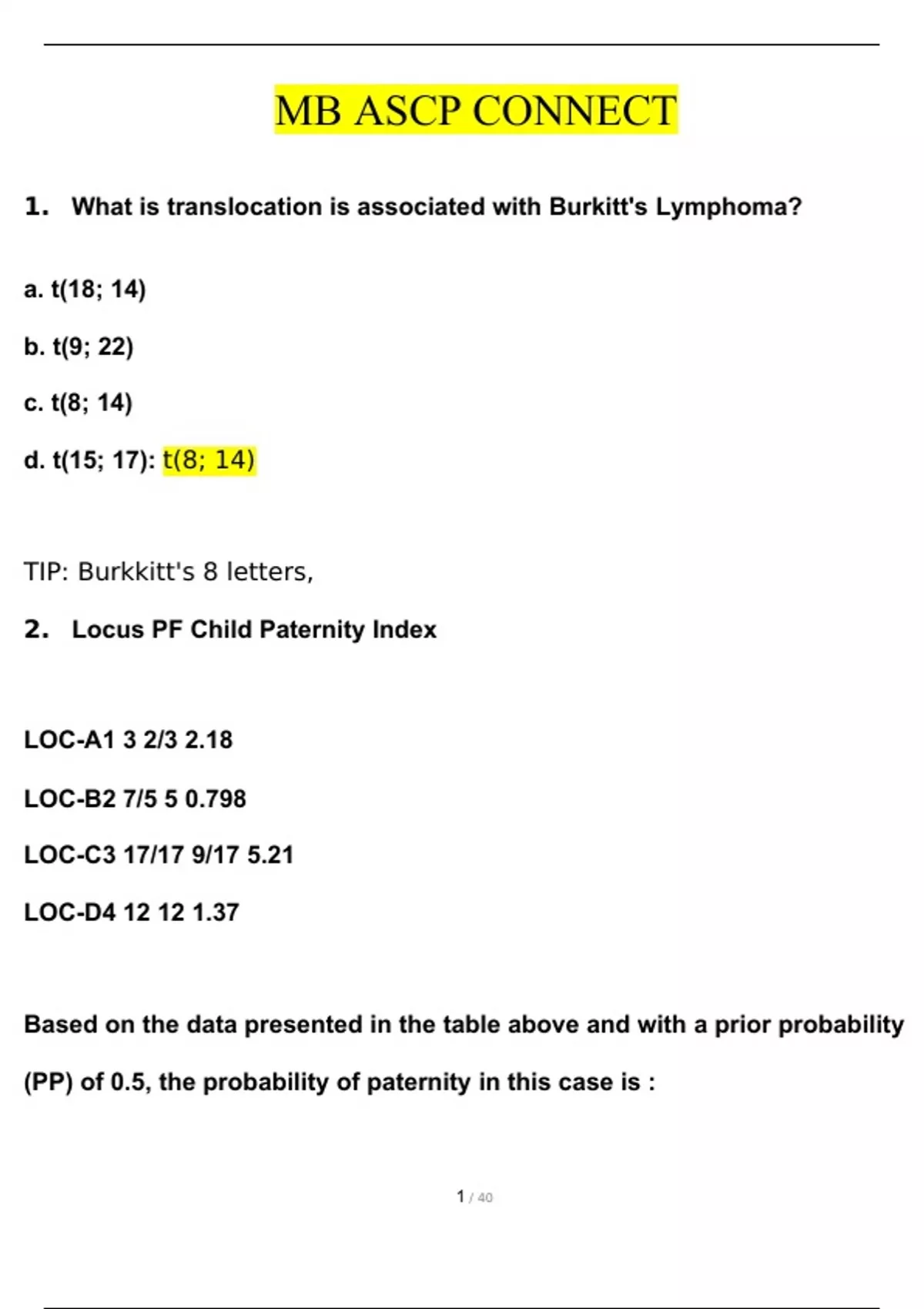MB (ASCP) CONNECT (updated) correctly answered